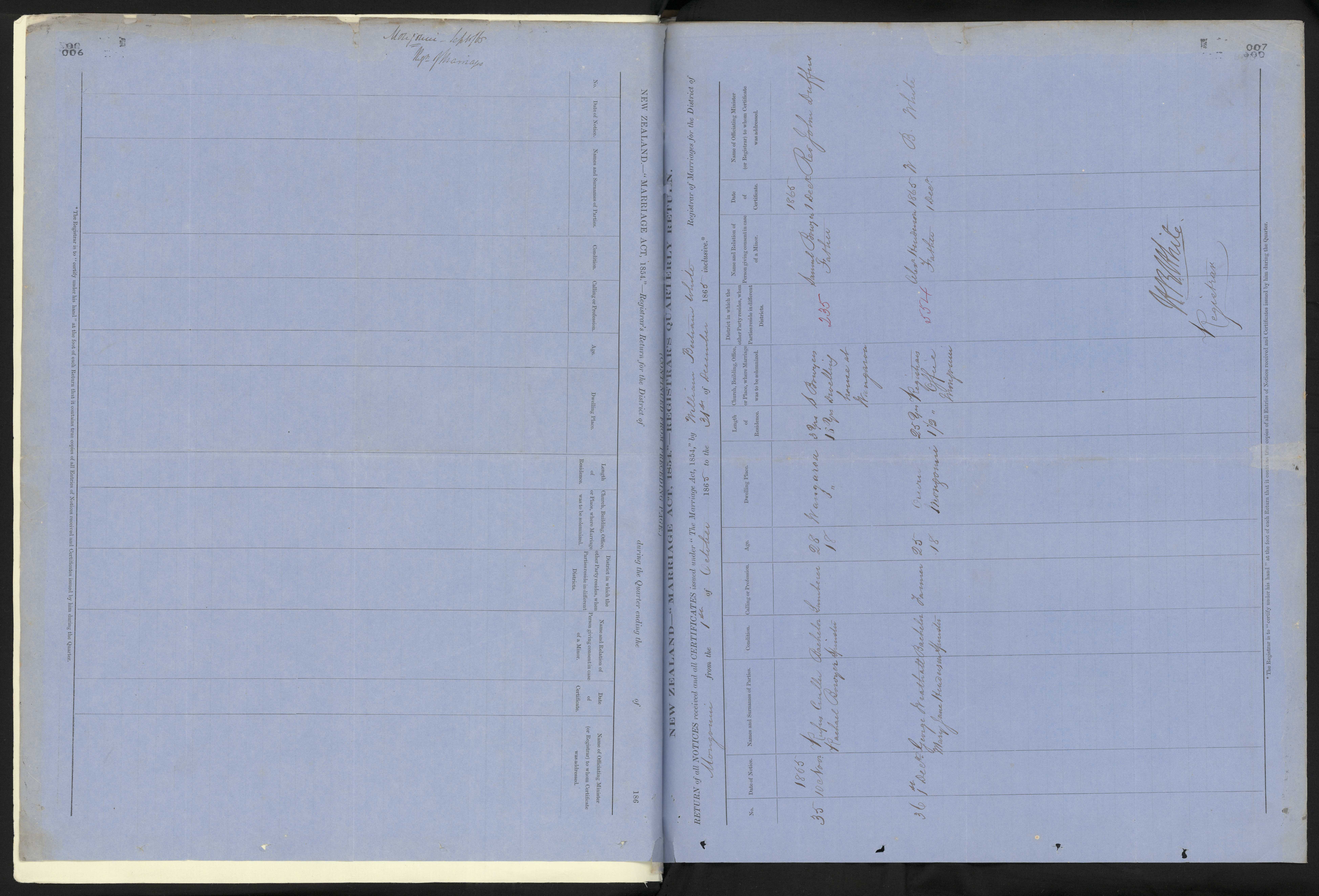 District of Mongonui Quarter ending 31 December 1865 Registrar William Bertram White