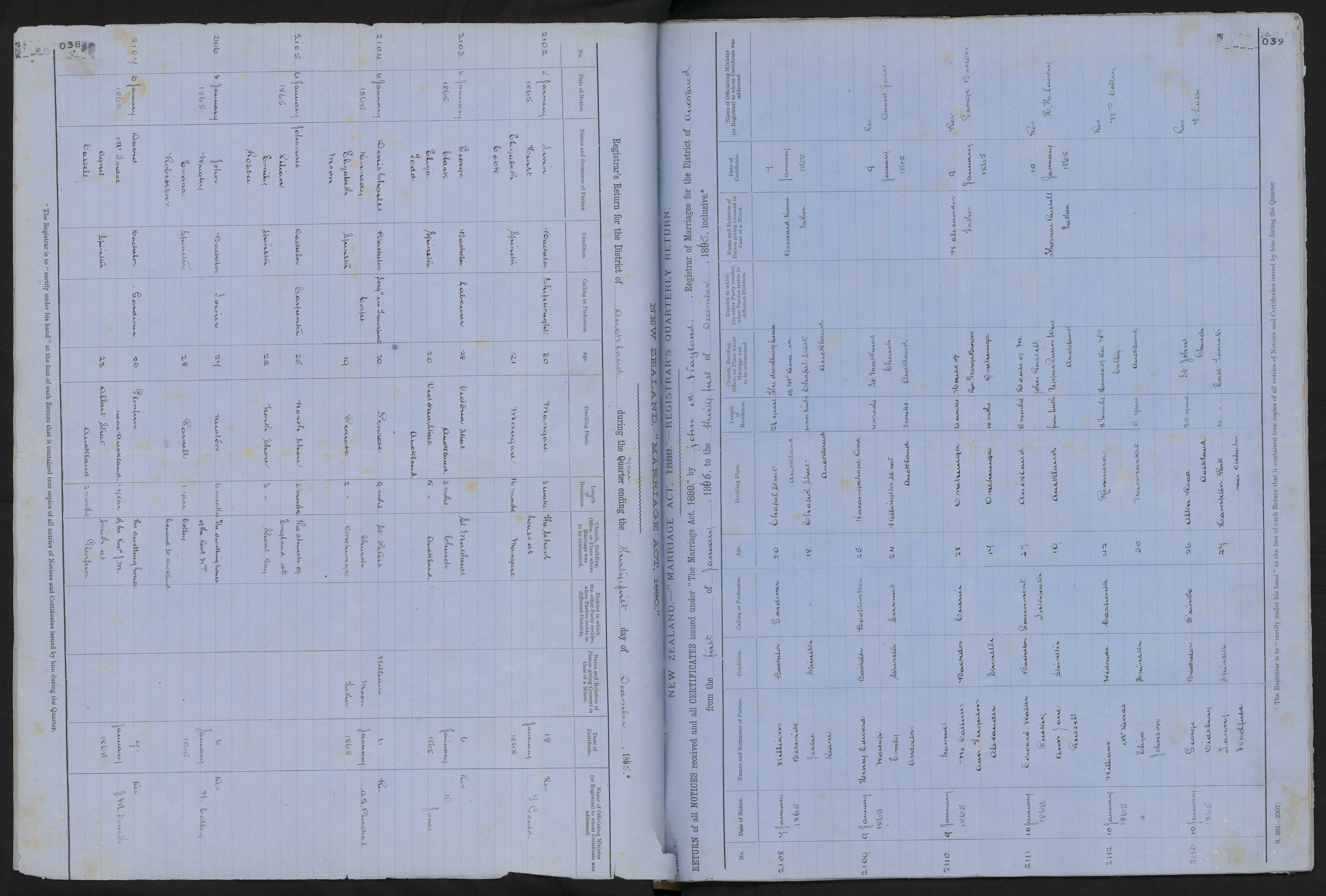 | 2109 | 9 January 1865 |