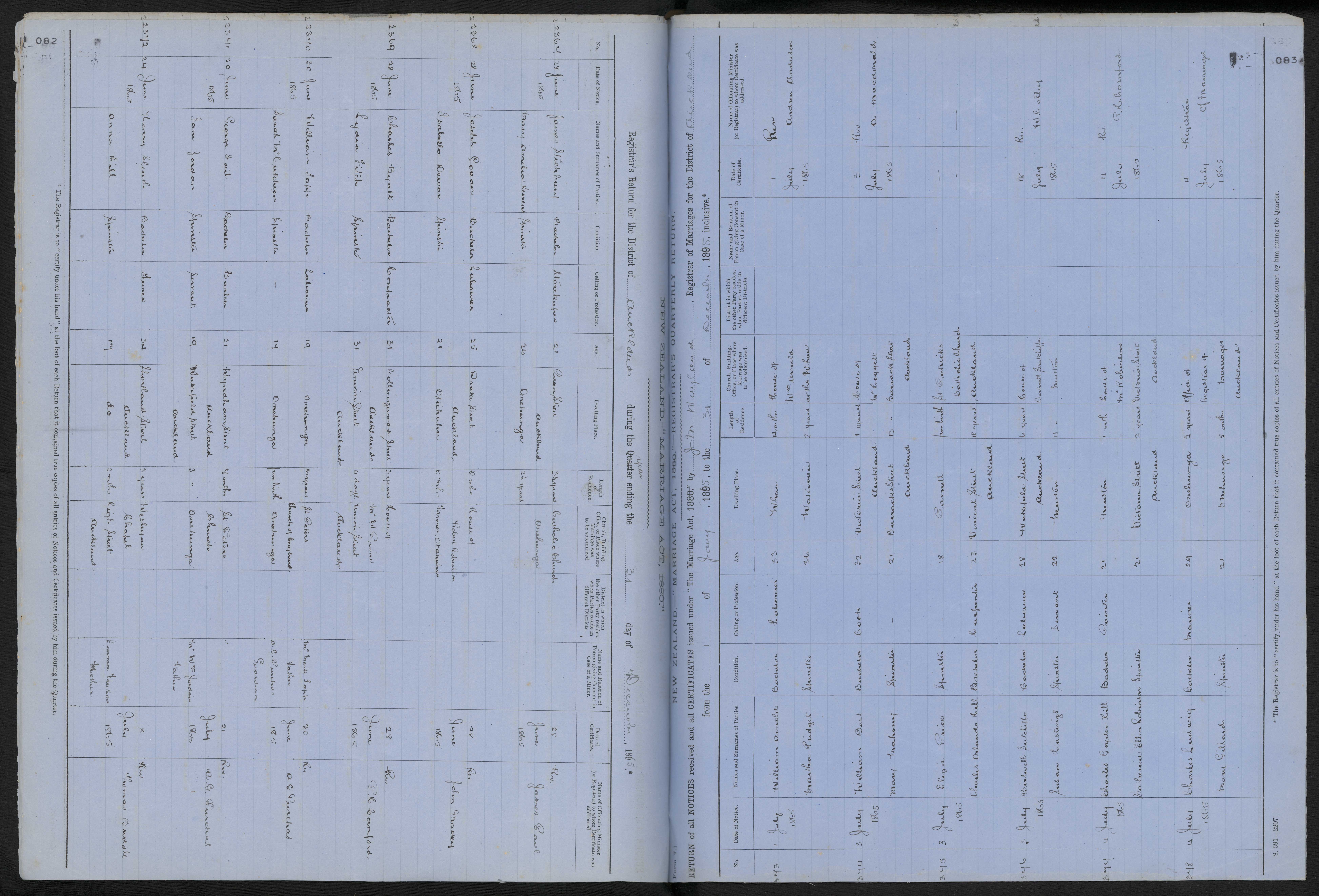 | No | Date of Notice | Names and Surnames of Parties | BDM Match | Condition | Calling or Profession | Age | Dwelling Place | Length of Residence | Marriage Place | Folio | Consent | Date of Certificate | Officiating Minister | ||||||||||||||||||||||||||||||||||||||||||||||||