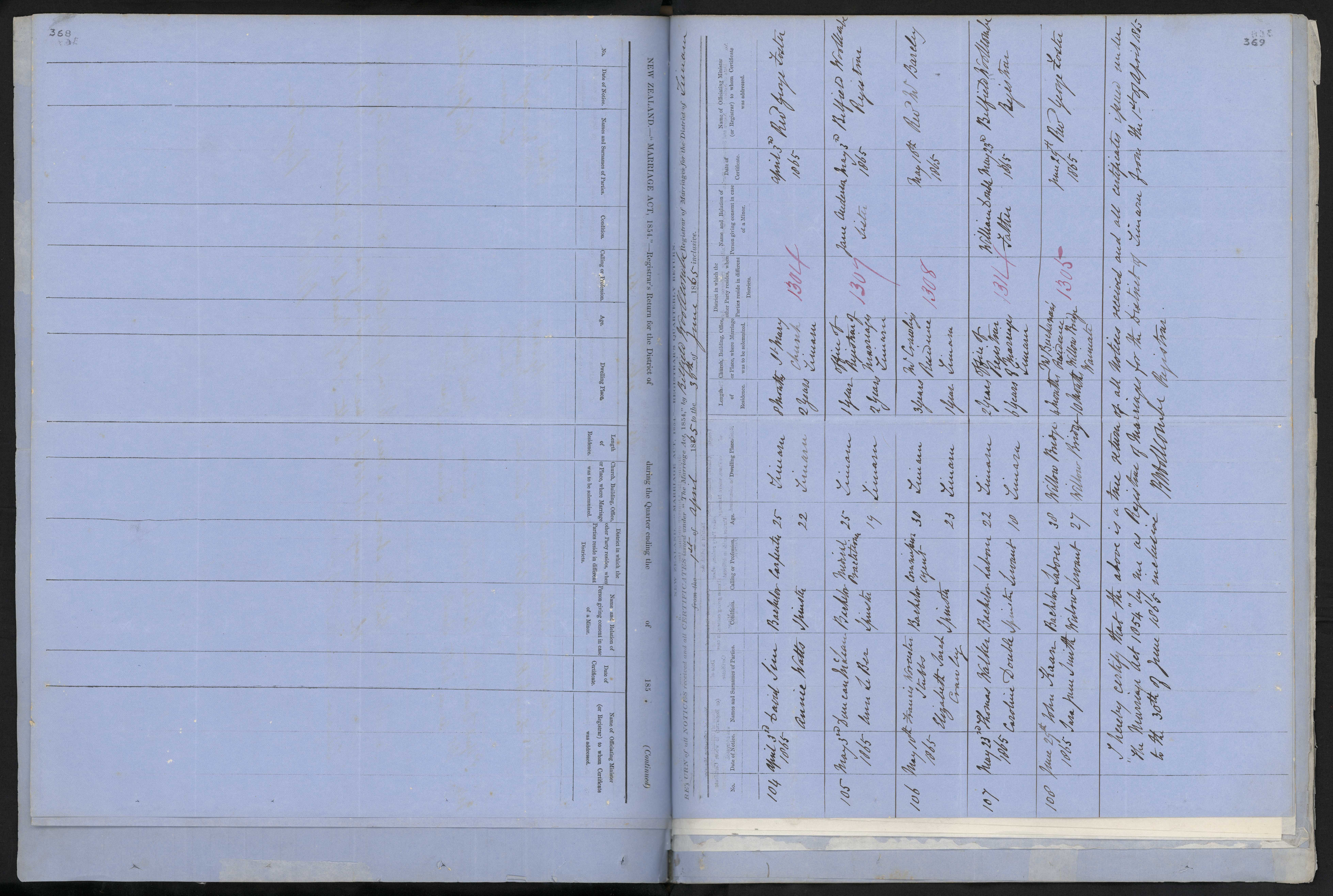 Office of Registrar of marriages Timaru 65/1314 William Double, Father 23 May 1865 Belfield Woollcombe Registrar