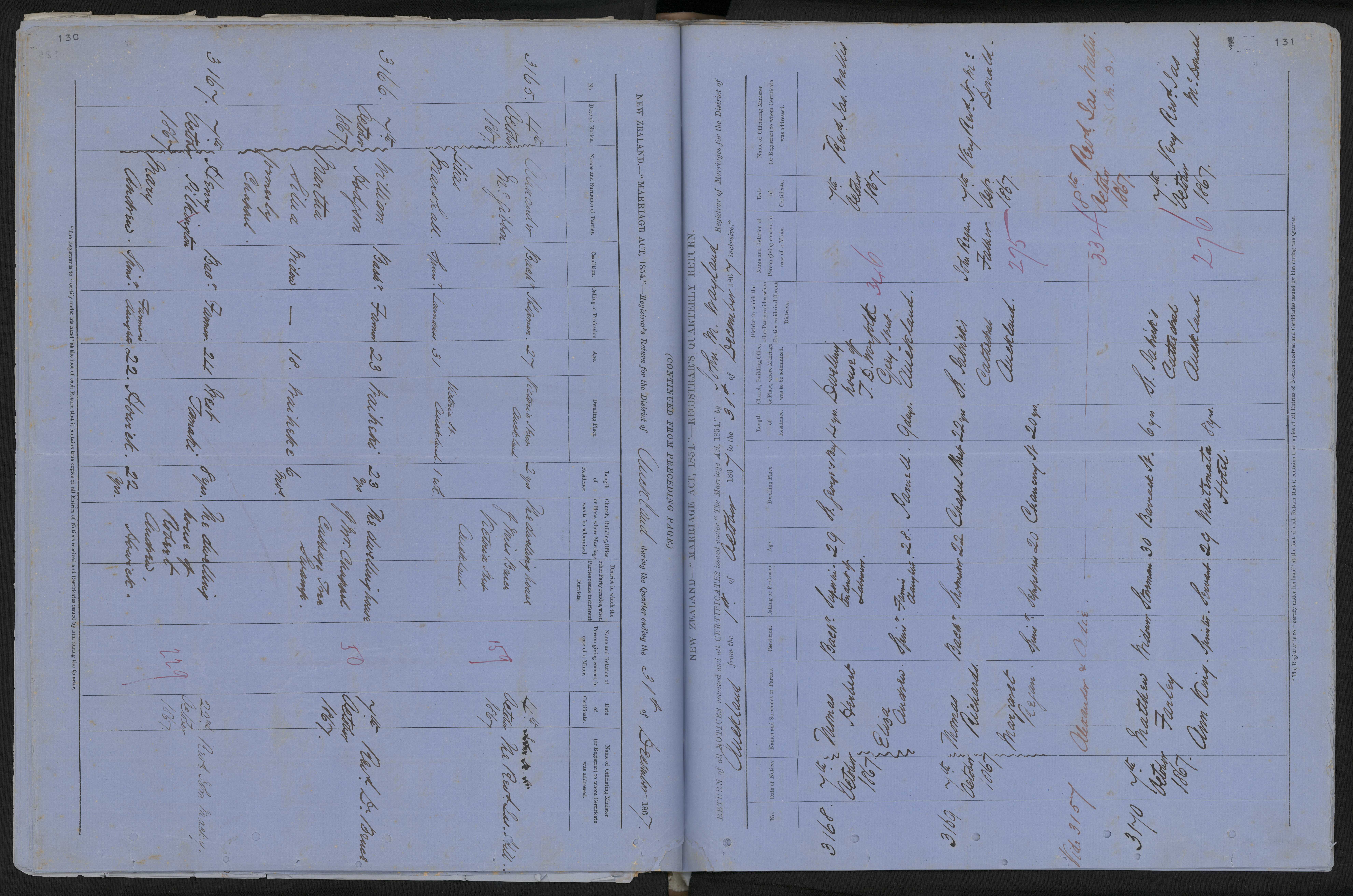 Marriage Place Dwelling house of Miss Burer Victoria Street Auckland