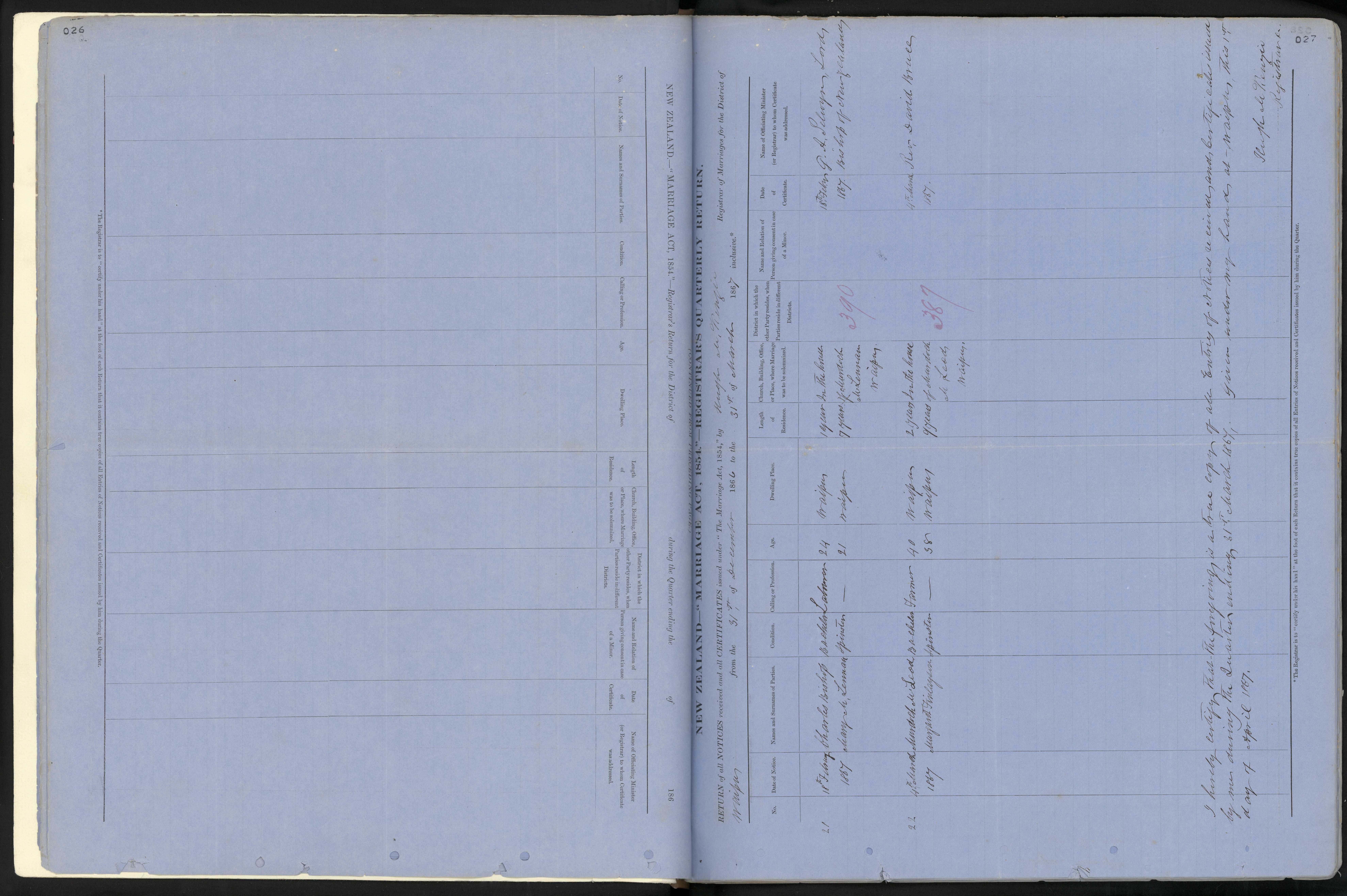 Reference: Registrar-General of Births, Deaths and Marriages, Notices of intention to marry, Series 8937, R2840379, Archives New Zealand Te Rua Mahara o te Kāwanatanga, Wellington