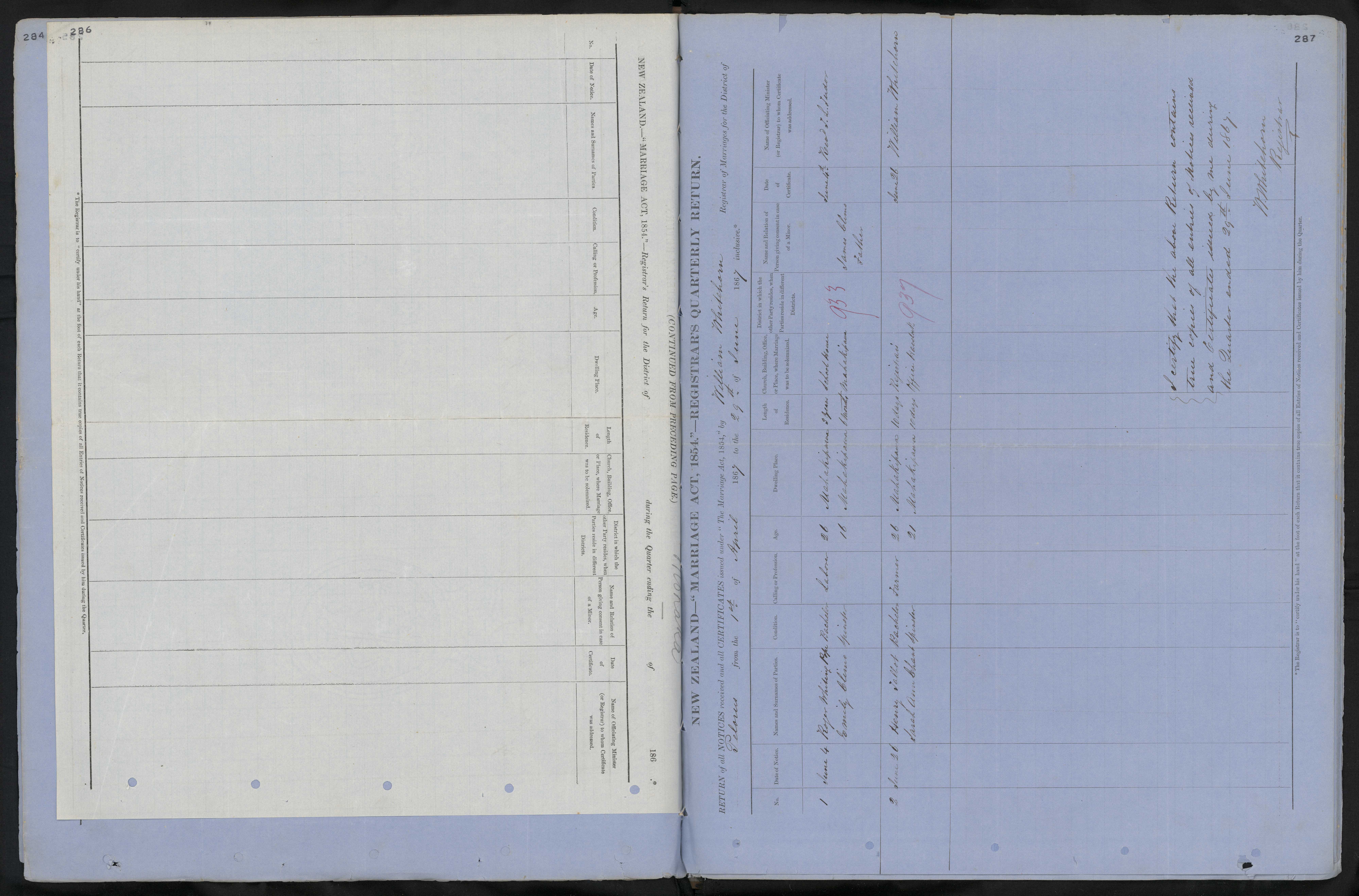 Reference: Registrar-General of Births, Deaths and Marriages, Notices of intention to marry, Series 8937, R2840379, Archives New Zealand Te Rua Mahara o te Kāwanatanga, Wellington