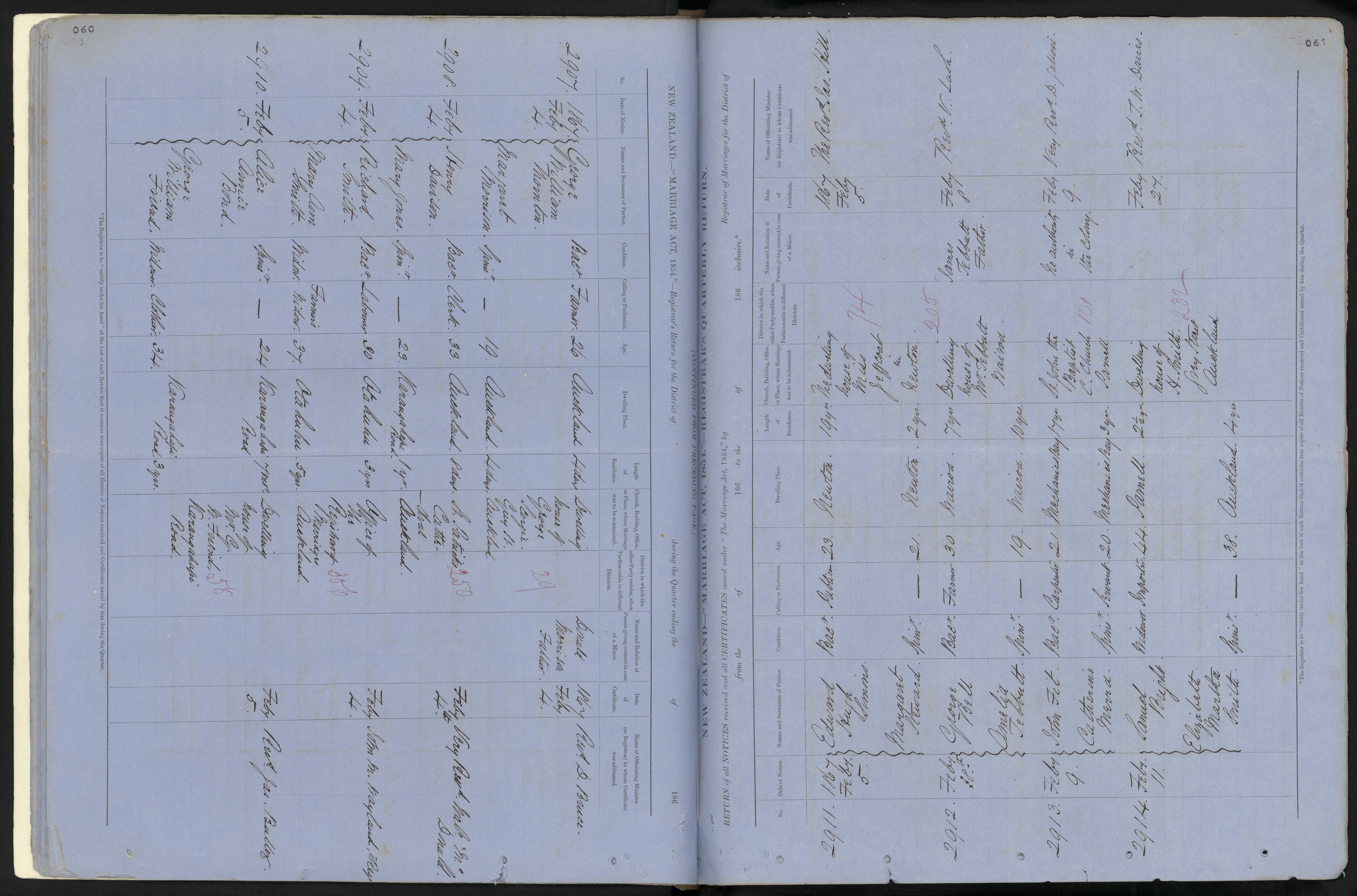 Office of the Registrar of Marriages Auckland 308 February 4 John M. Wayland, Regy