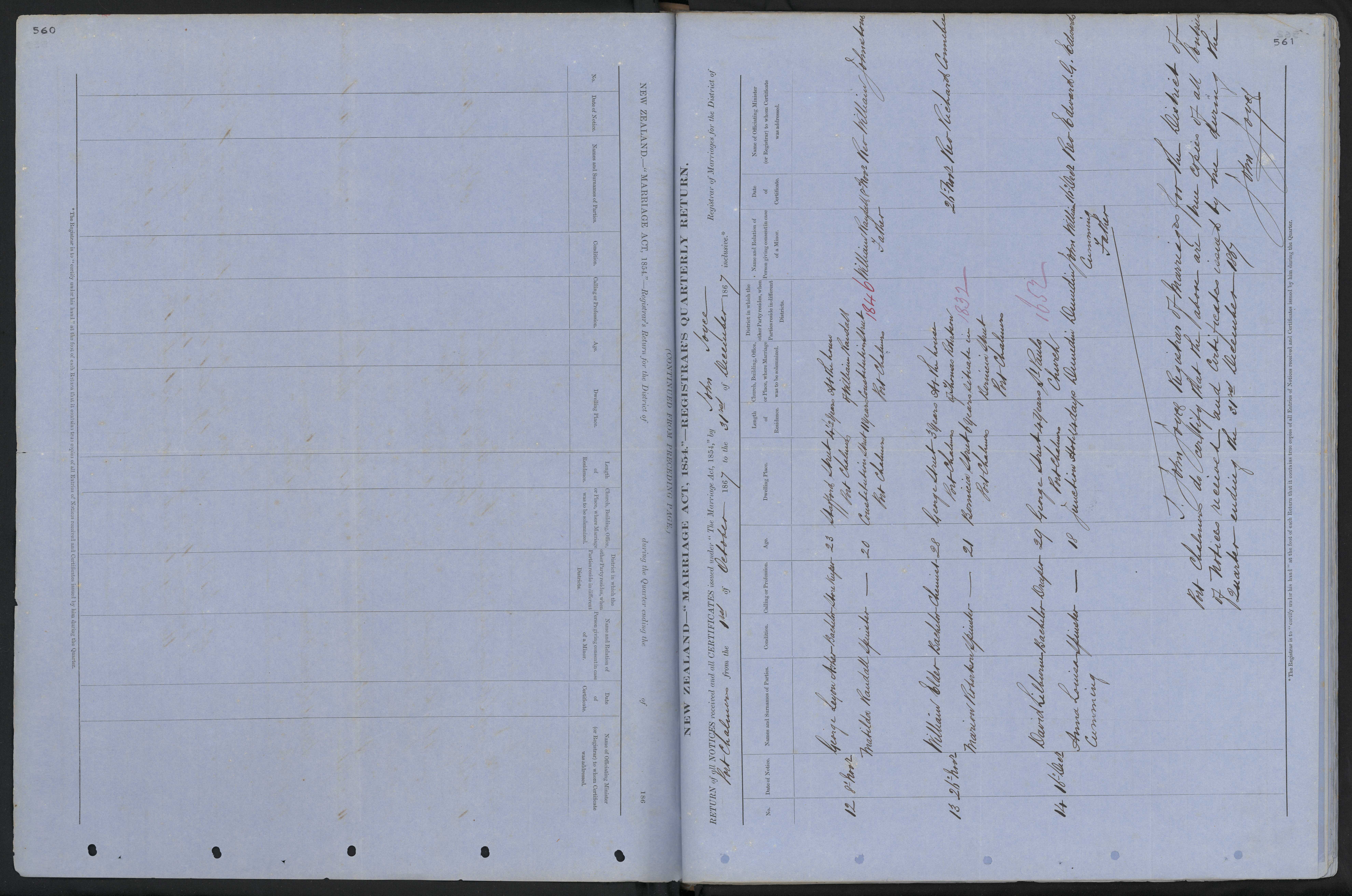 Date of Certificate 26 November 1867