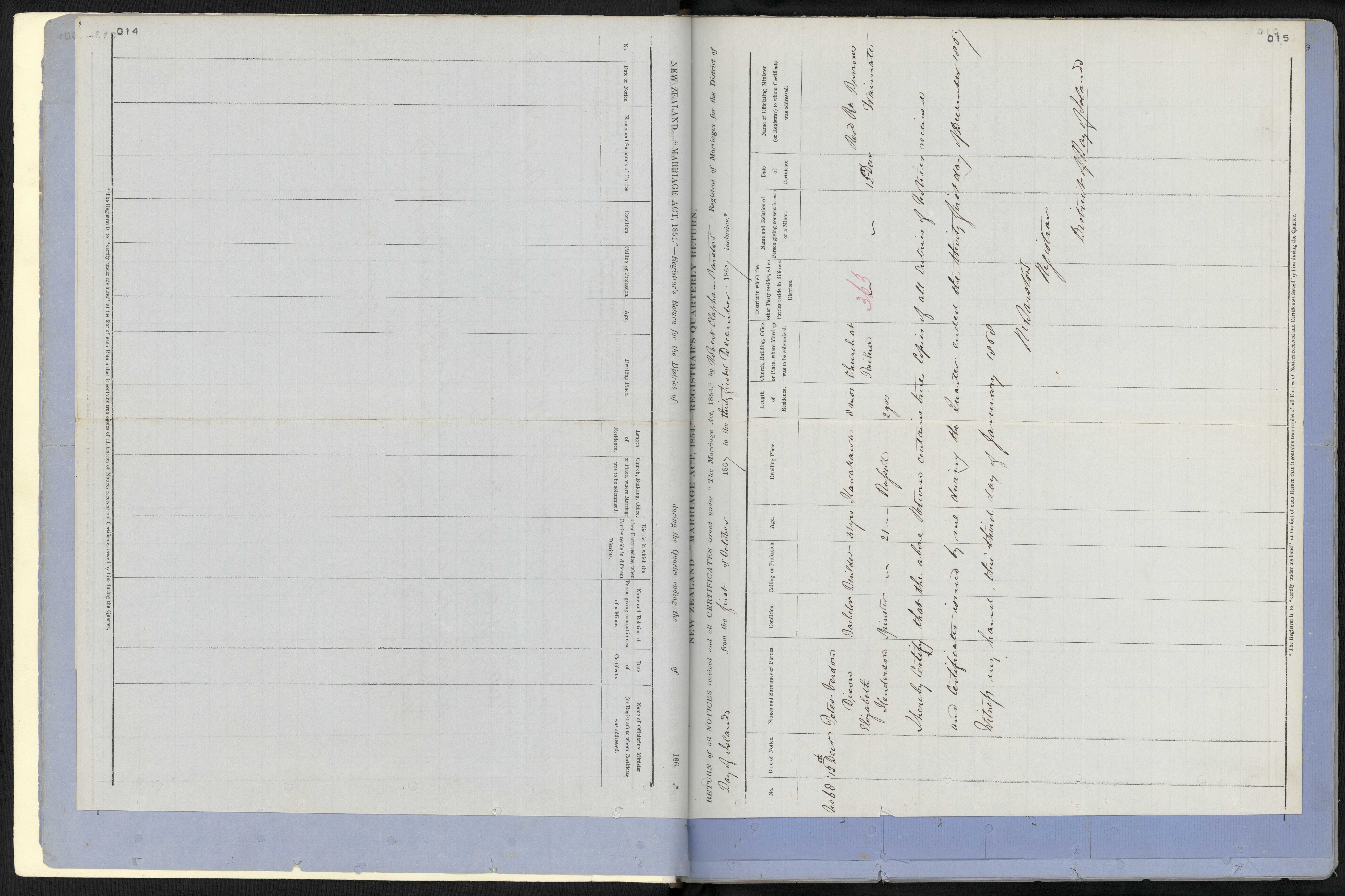 Reference: Registrar-General of Births, Deaths and Marriages, Notices of intention to marry, Series 8937, R2840379, Archives New Zealand Te Rua Mahara o te Kāwanatanga, Wellington