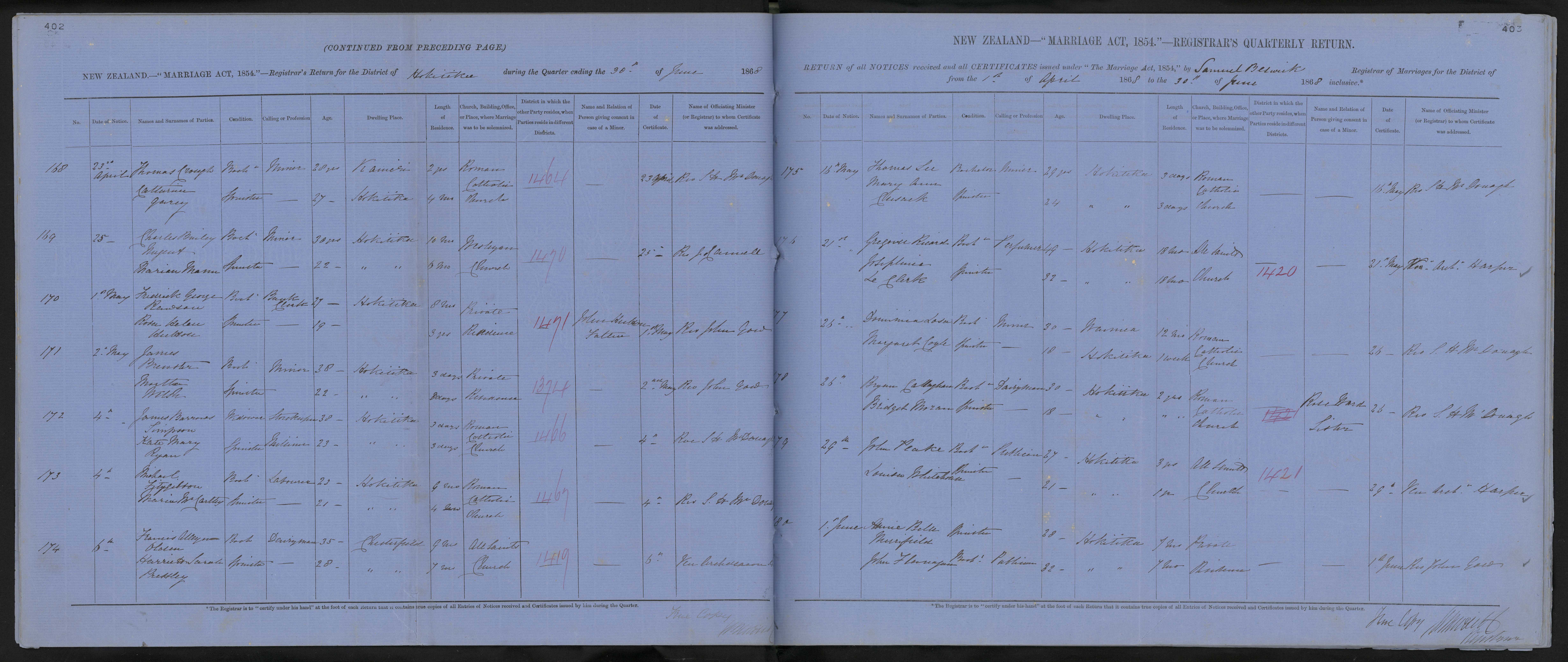 Reference: Registrar-General of Births, Deaths and Marriages, Notices of intention to marry, Series 8937, R2840380, Archives New Zealand Te Rua Mahara o te Kāwanatanga, Wellington