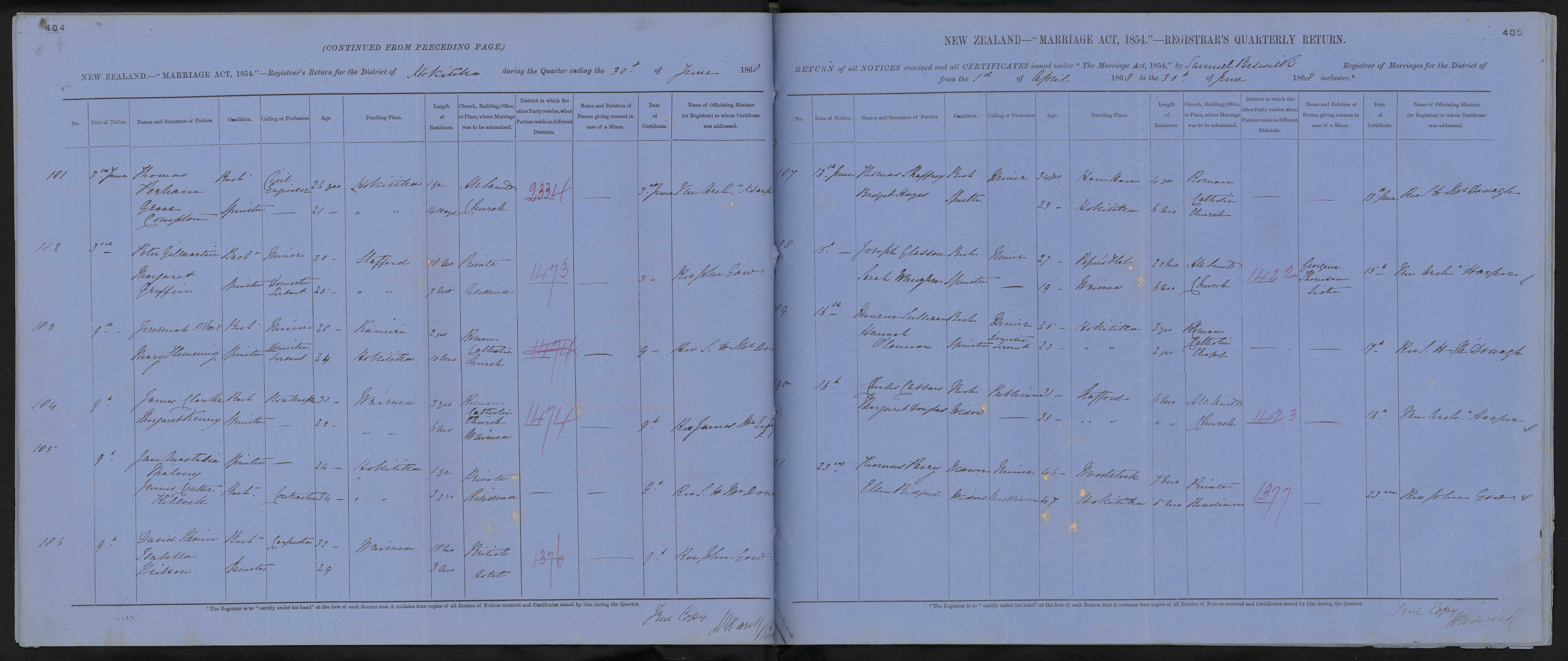 Date of Certificate 16 June 1868