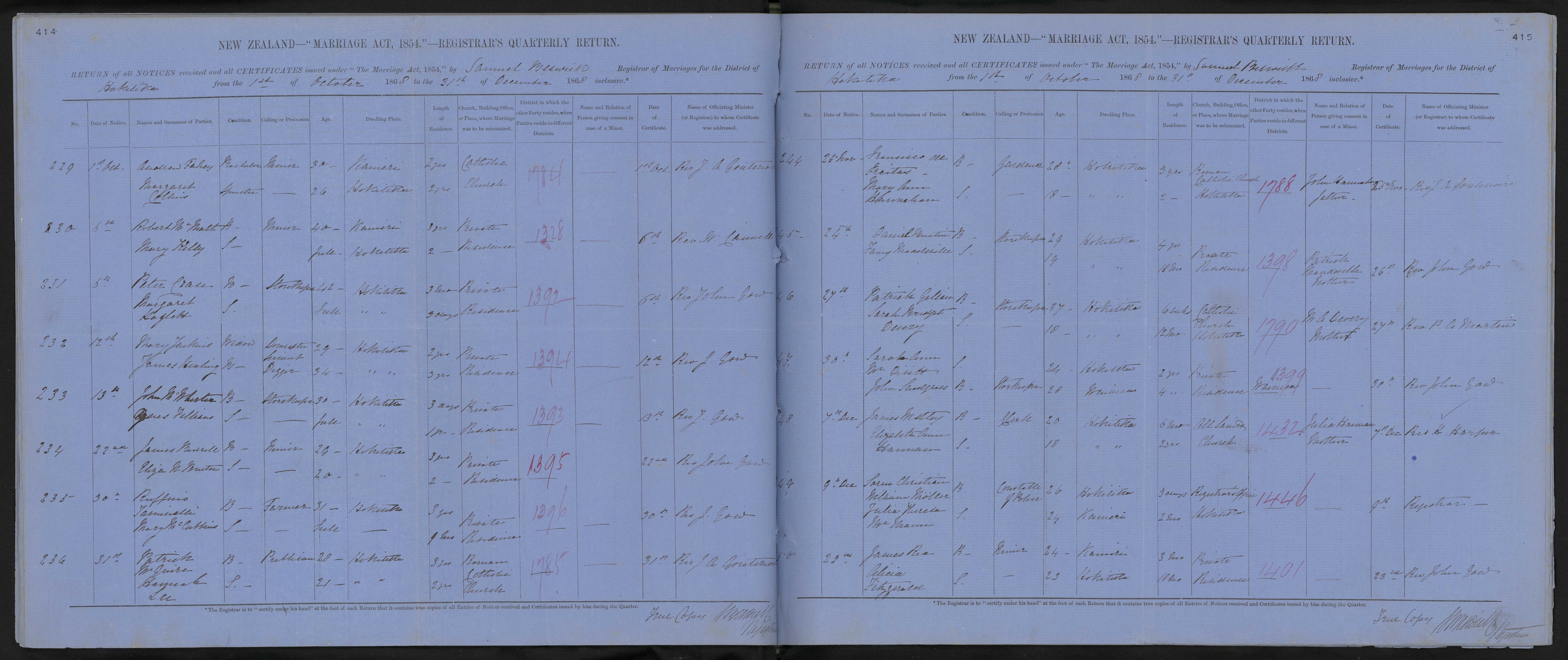 Registrar's Office Hokitika | 68/1446 | 9 December 1868 | Registrar | ||||||||||||||||||||||||||||||||||||||||||||||||||