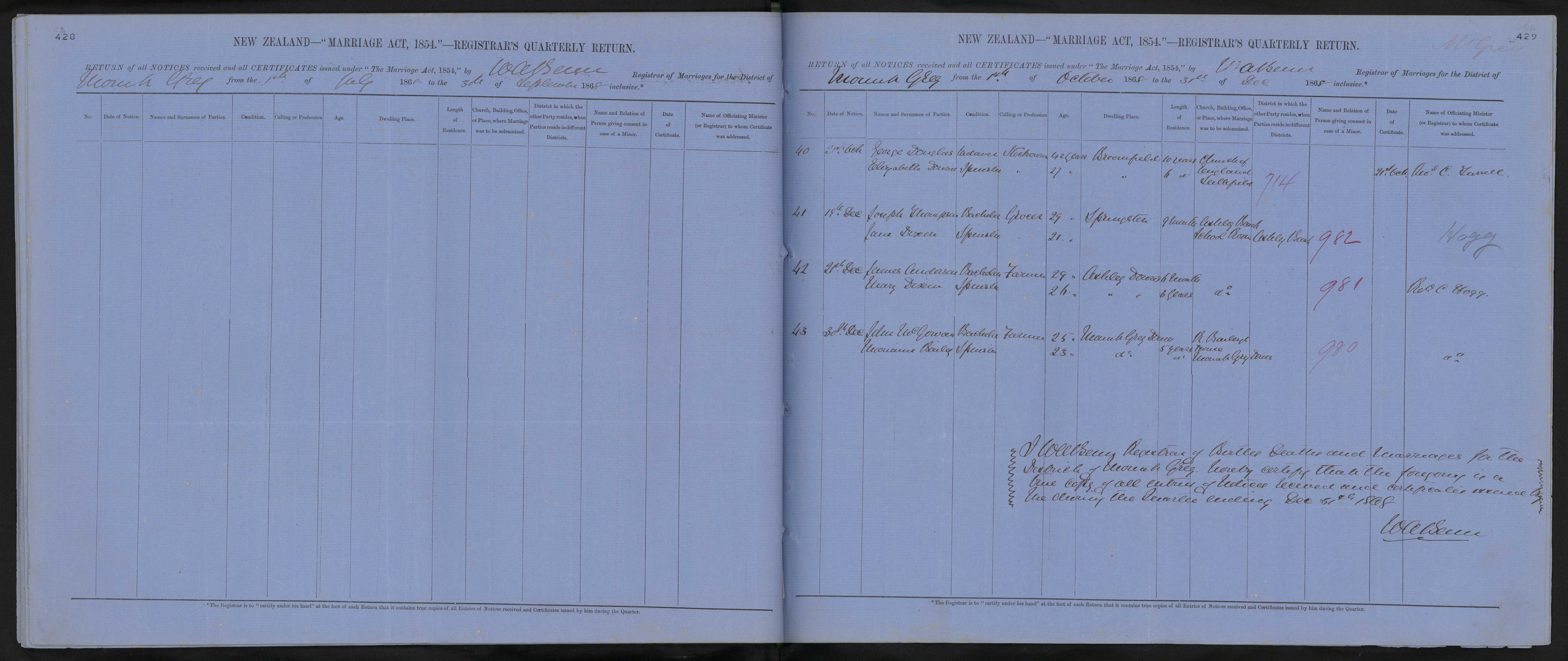 Date of Certificate 11 November 1868