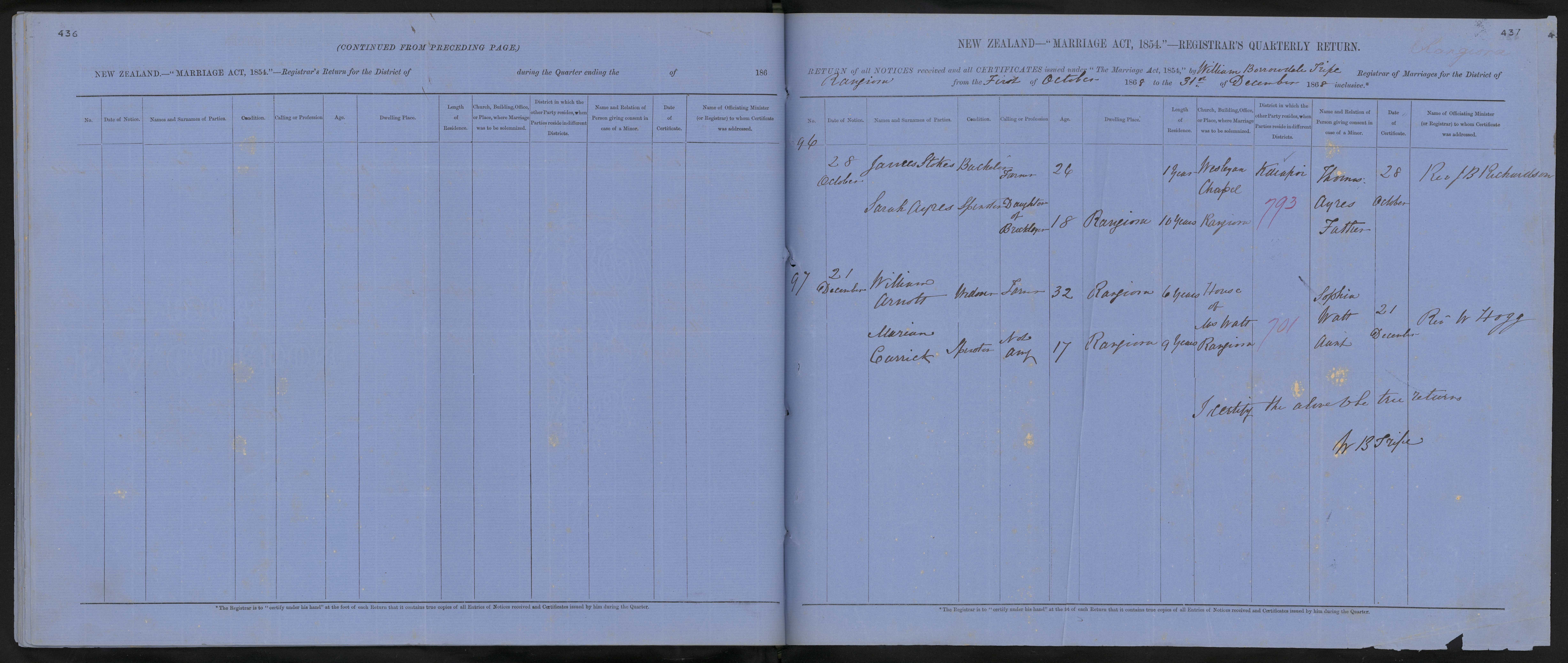 Reference: Registrar-General of Births, Deaths and Marriages, Notices of intention to marry, Series 8937, R2840380, Archives New Zealand Te Rua Mahara o te Kāwanatanga, Wellington