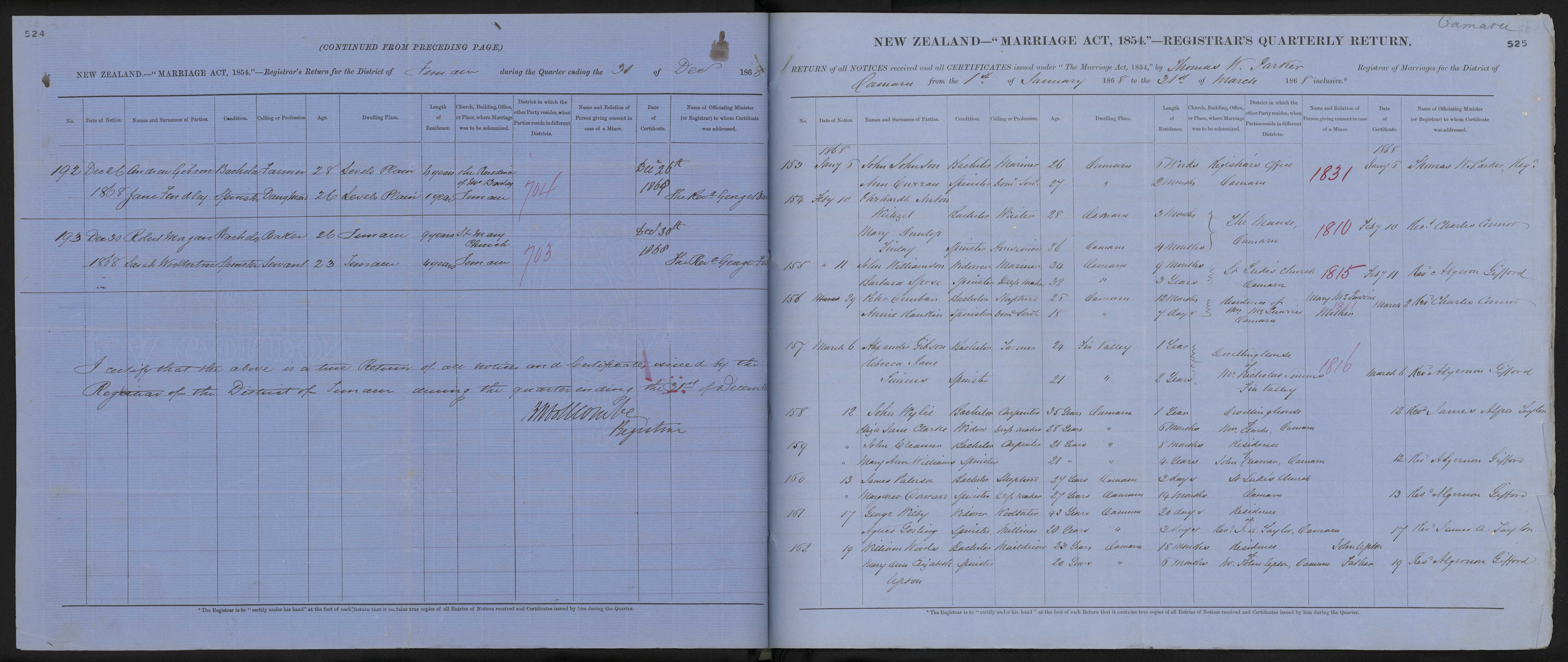 Registrar's Office Oamaru | 68/1831 | 6 January 1868 | Thomas W. Parker, Reg. | ||||||||||||||||||||||||||||||||||||||||||||||||||