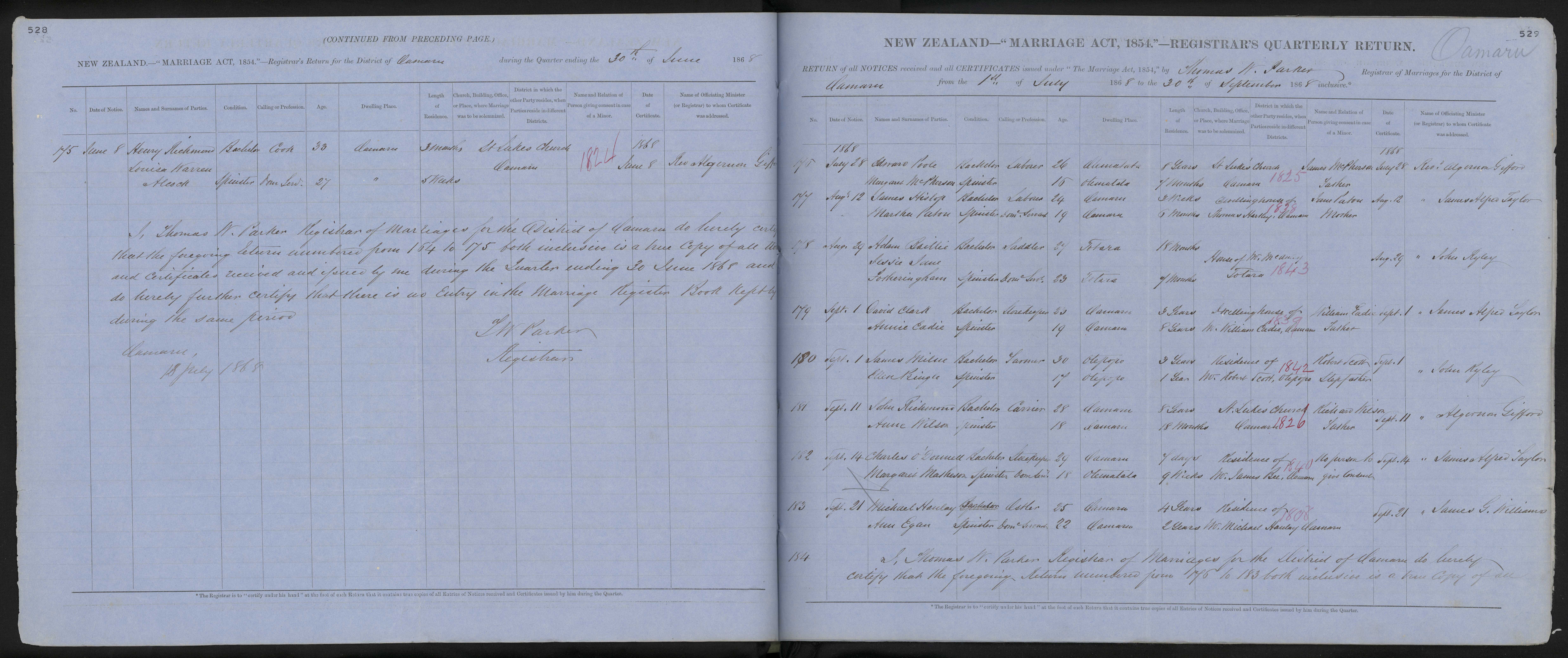 Residence of Mr. James Bee, Oamaru | 68/1840 | No person to give consent | 14 September 1868 | Rev James Alfred Taylor | |||||||||||||||||||||||||||||||||||||||||||||||||