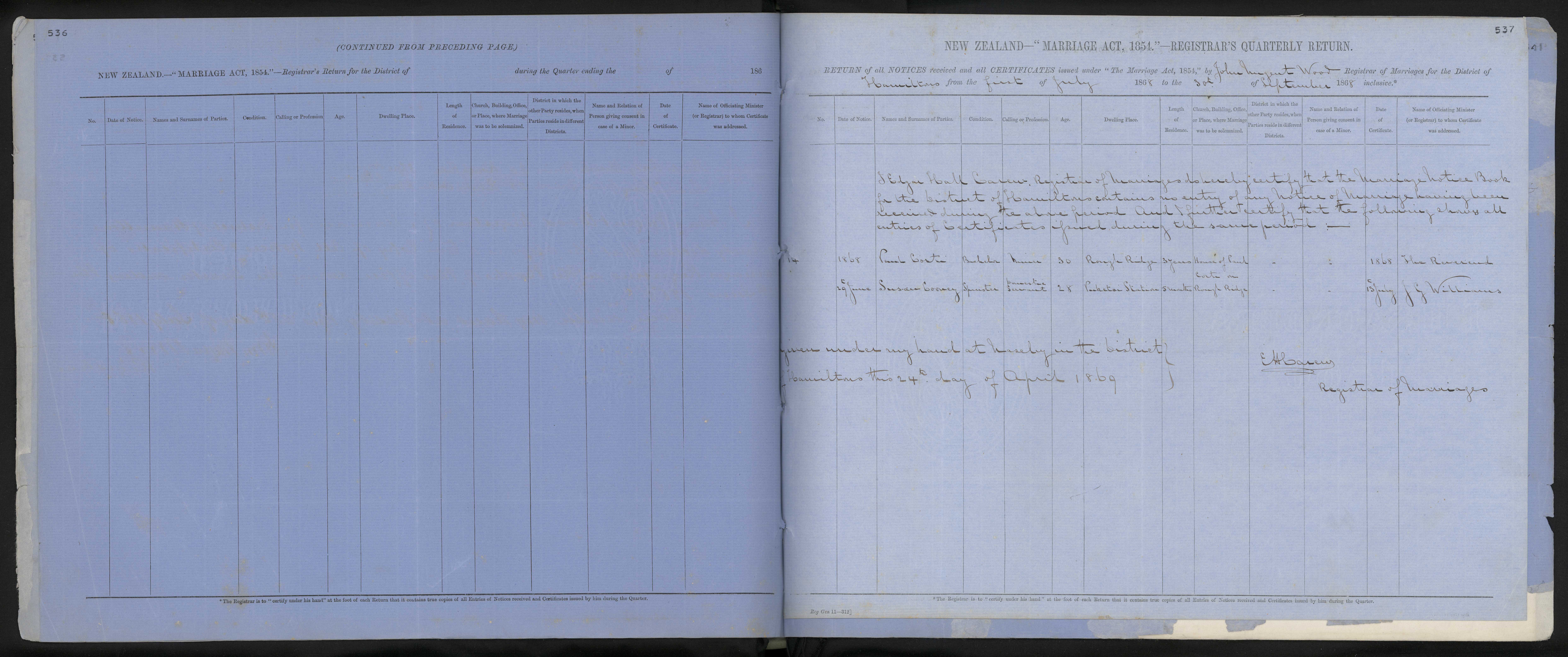 Date of Certificate 13 July 1868
