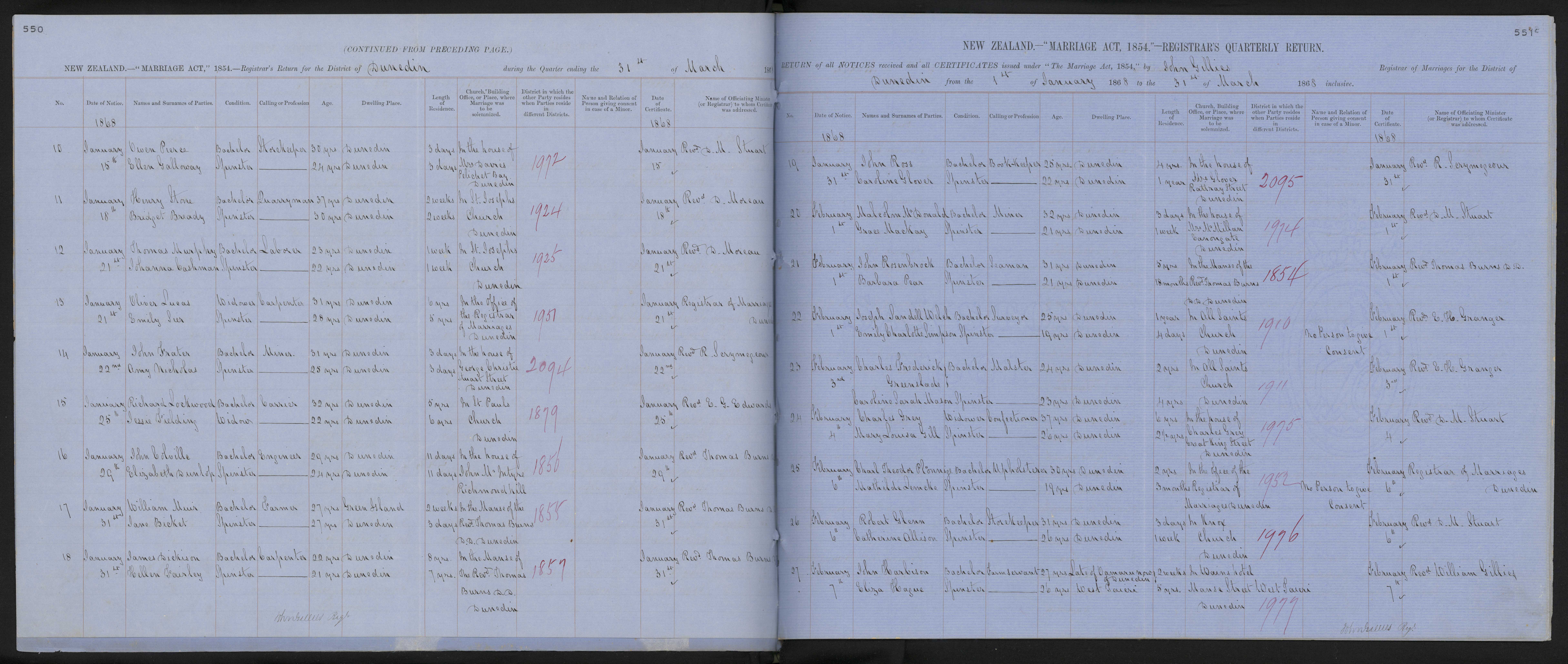 In All Saints Church Dunedin | 68/1910 | No Person to give Consent | 1 February 1868 | Rev. E. H. Granger | |||||||||||||||||||||||||||||||||||||||||||||||||