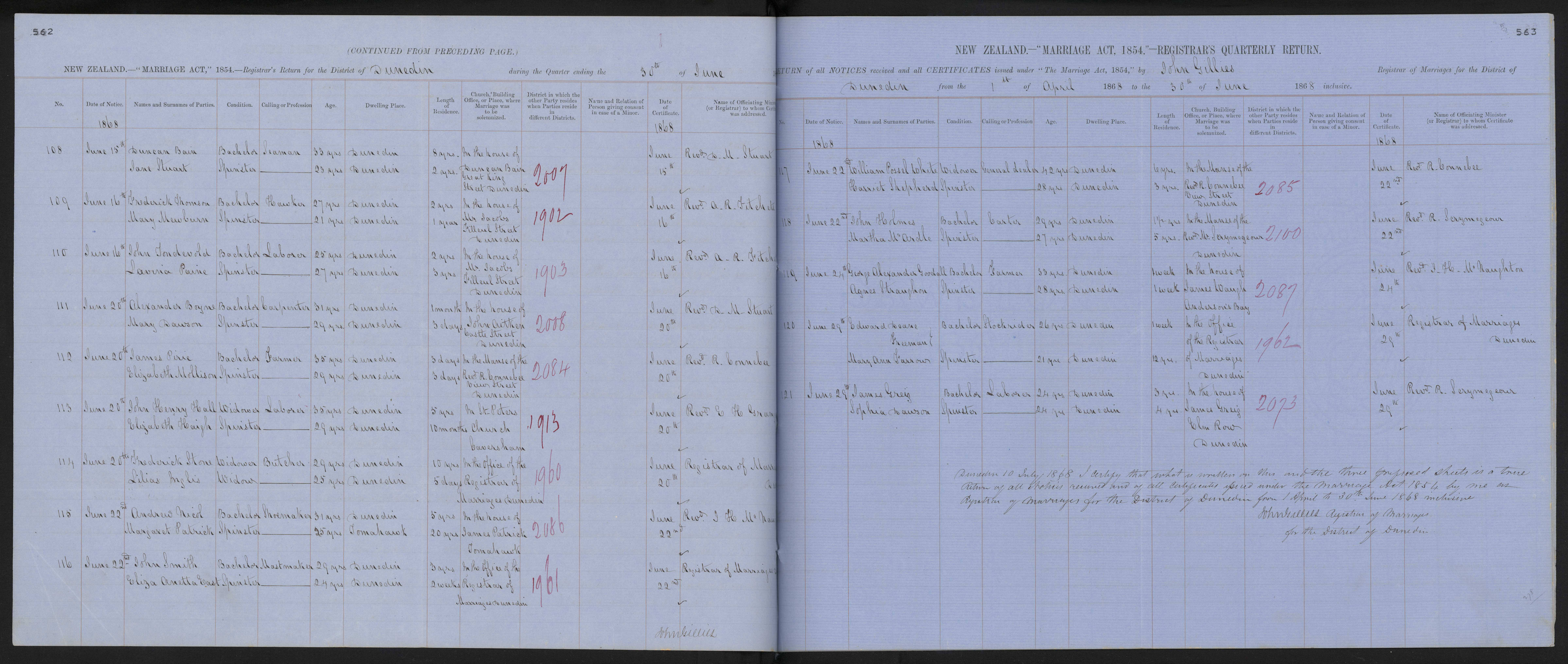 In the Office of the Registrar of Marriages, Dunedin 68/1962 29 June 1868 Registrar of Marriages Dunedin