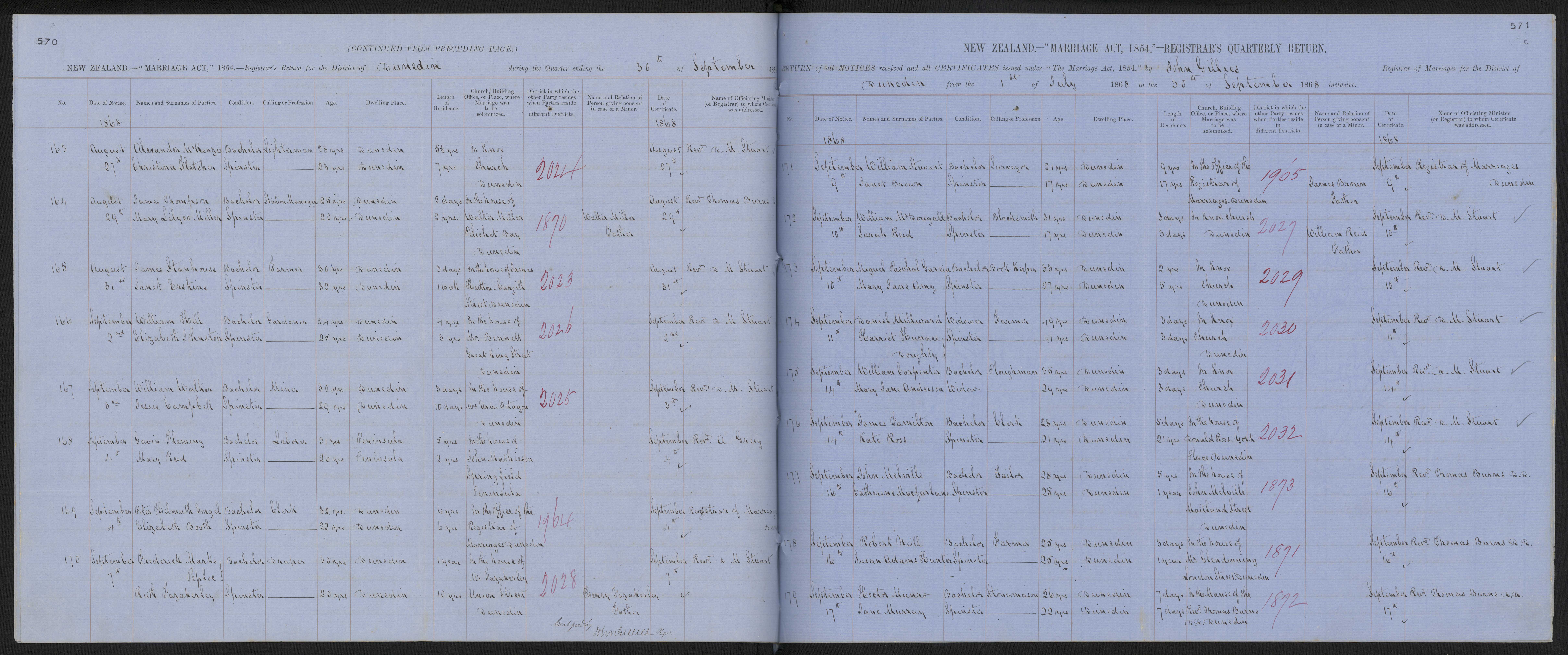 In the Office of the Registrar of Marriages Dunedin | 68/1965 | James Brown, Father | 9 September 1868 | Registrar of Marriages Dunedin | |||||||||||||||||||||||||||||||||||||||||||||||||