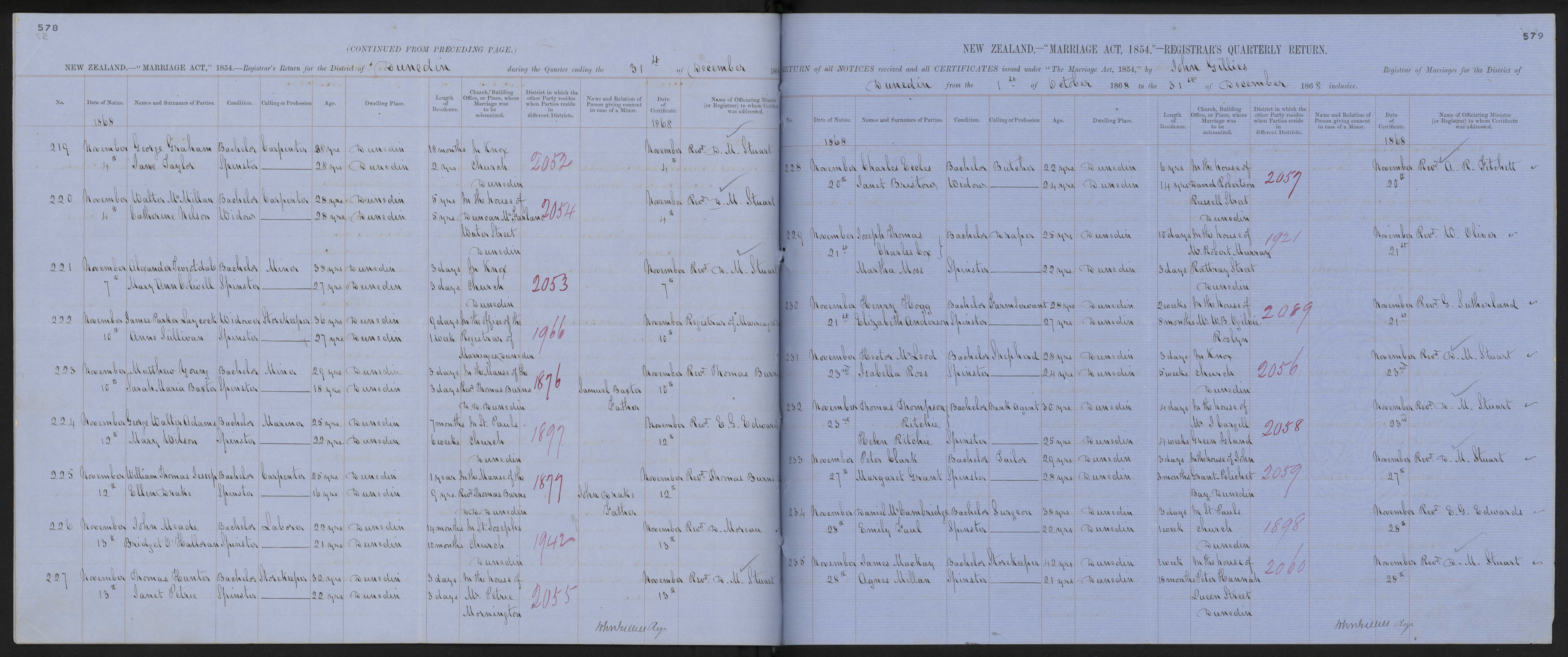 In Knox Church Dunedin | 68/2056 | 23 November 1868 | Rev. D. M. Stuart | ||||||||||||||||||||||||||||||||||||||||||||||||||