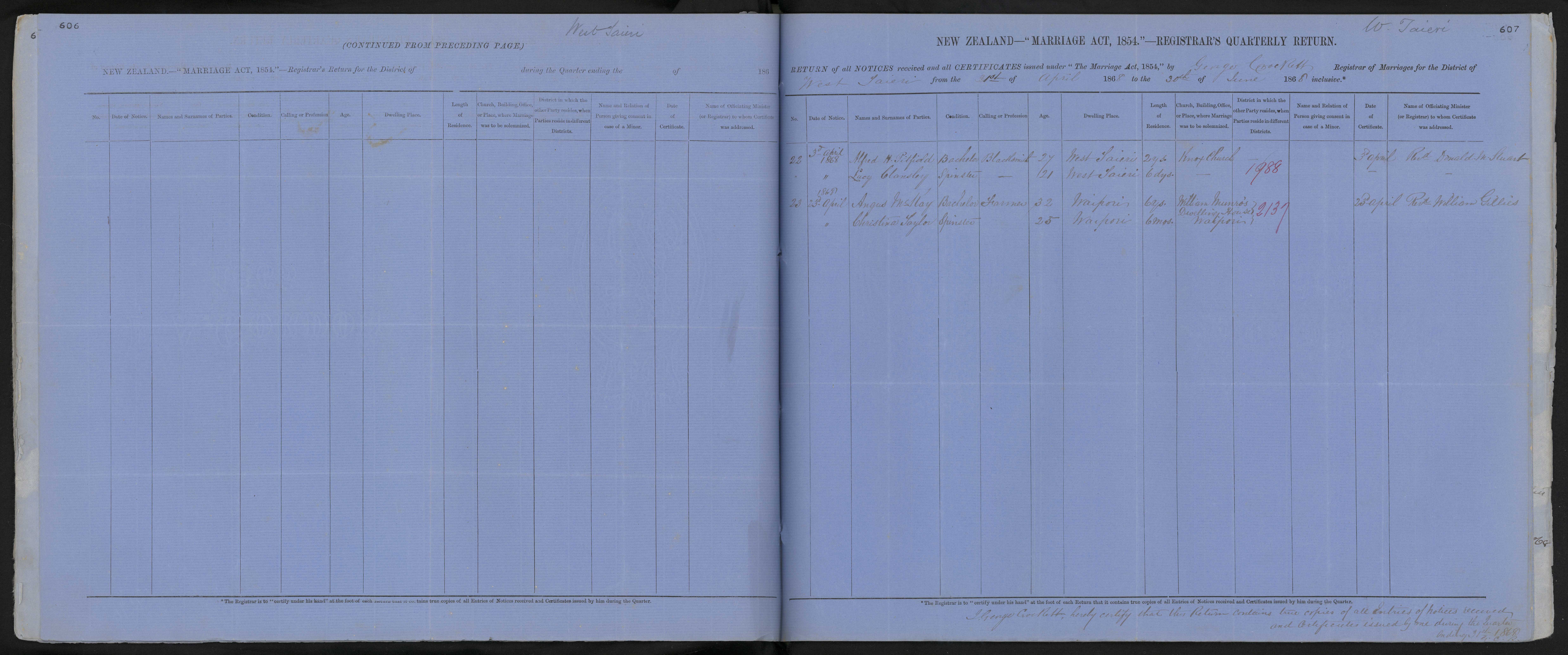 Date of Certificate 23 April 1868