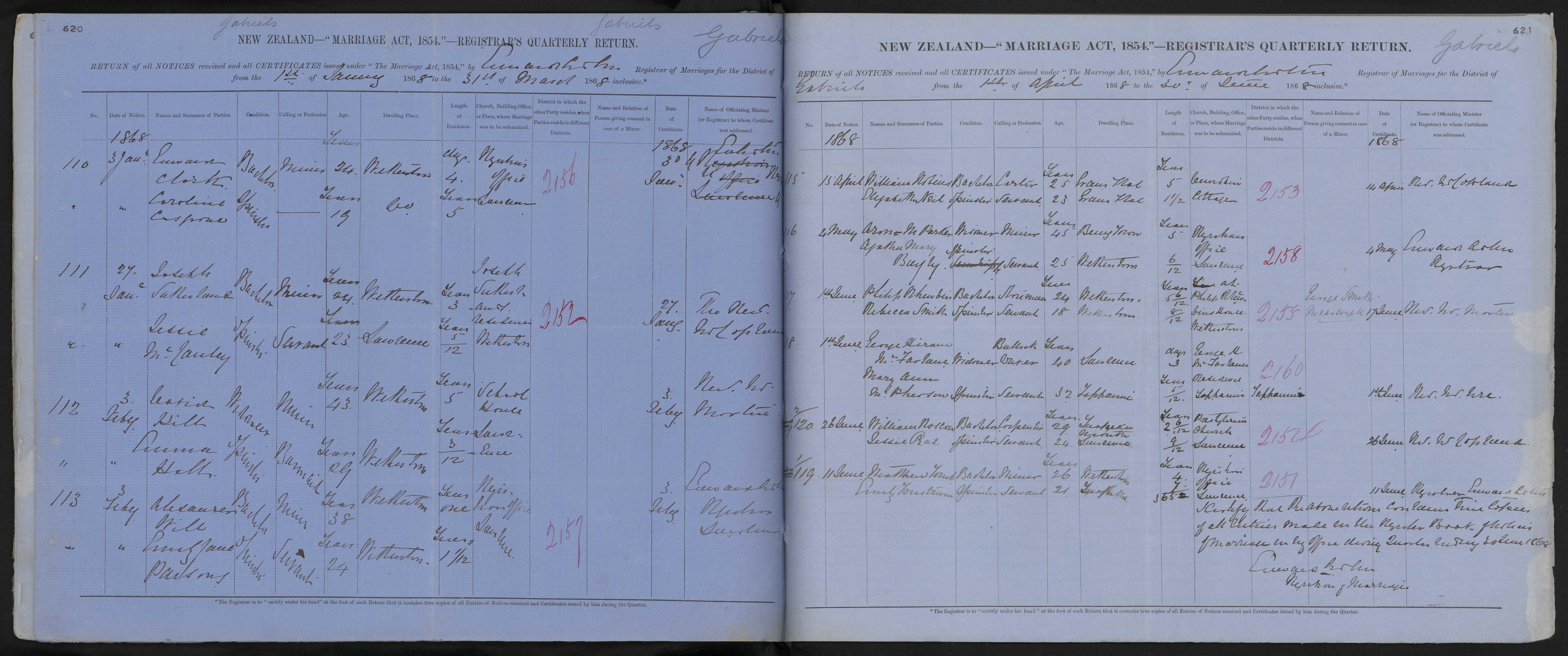 Registrars Office Lawrence | 68/2151 | 11 June 1868 | Registrar Edward Croker | ||||||||||||||||||||||||||||||||||||||||||||||||||