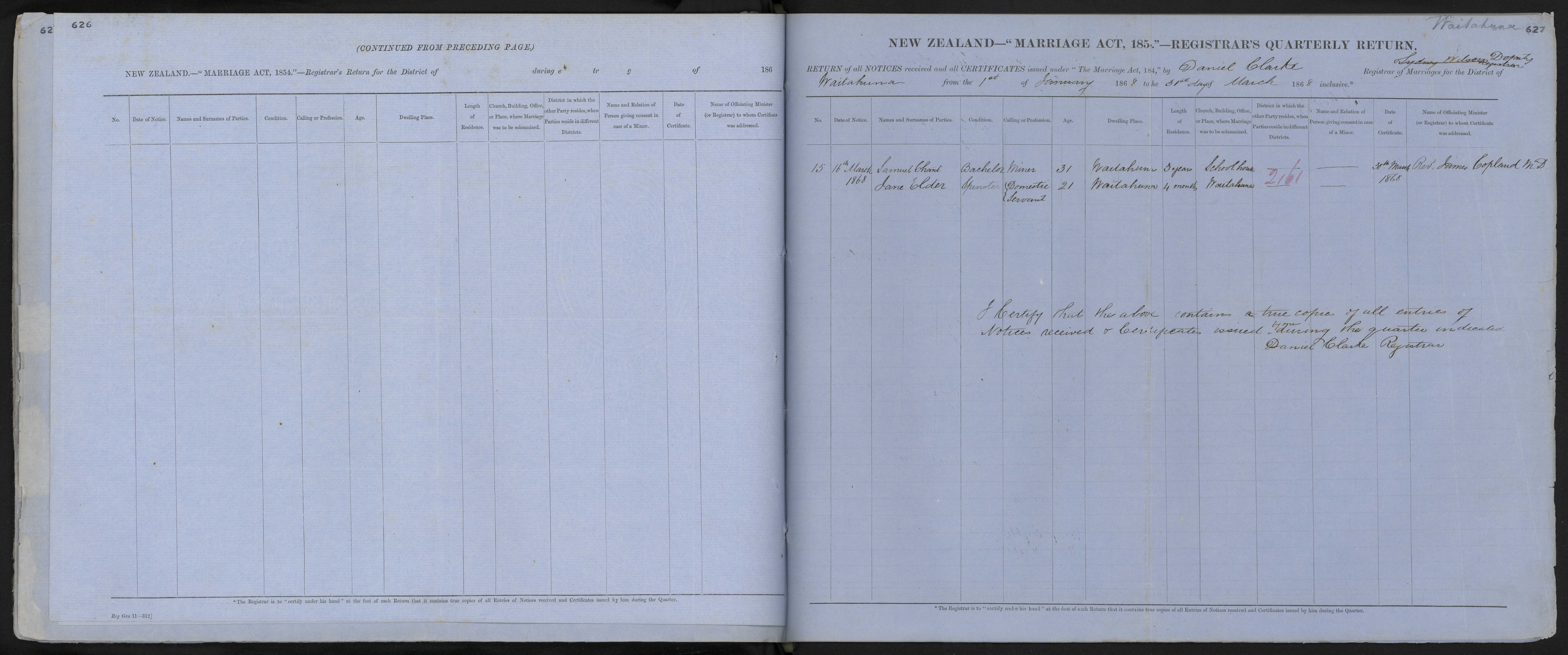District of Waitahuna Quarter ending 31 March 1868 Registrar Daniel Clarke