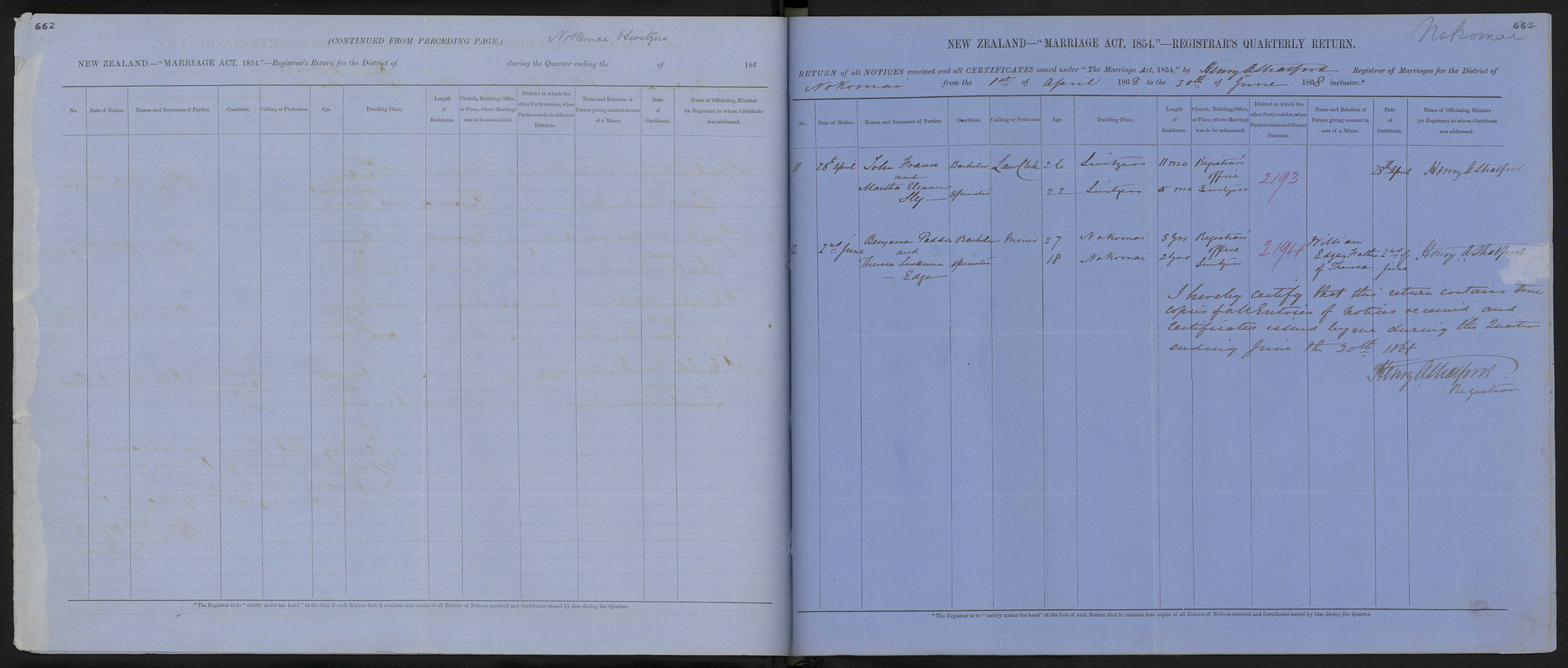 Reference: Registrar-General of Births, Deaths and Marriages, Notices of intention to marry, Series 8937, R2840380, Archives New Zealand Te Rua Mahara o te Kāwanatanga, Wellington