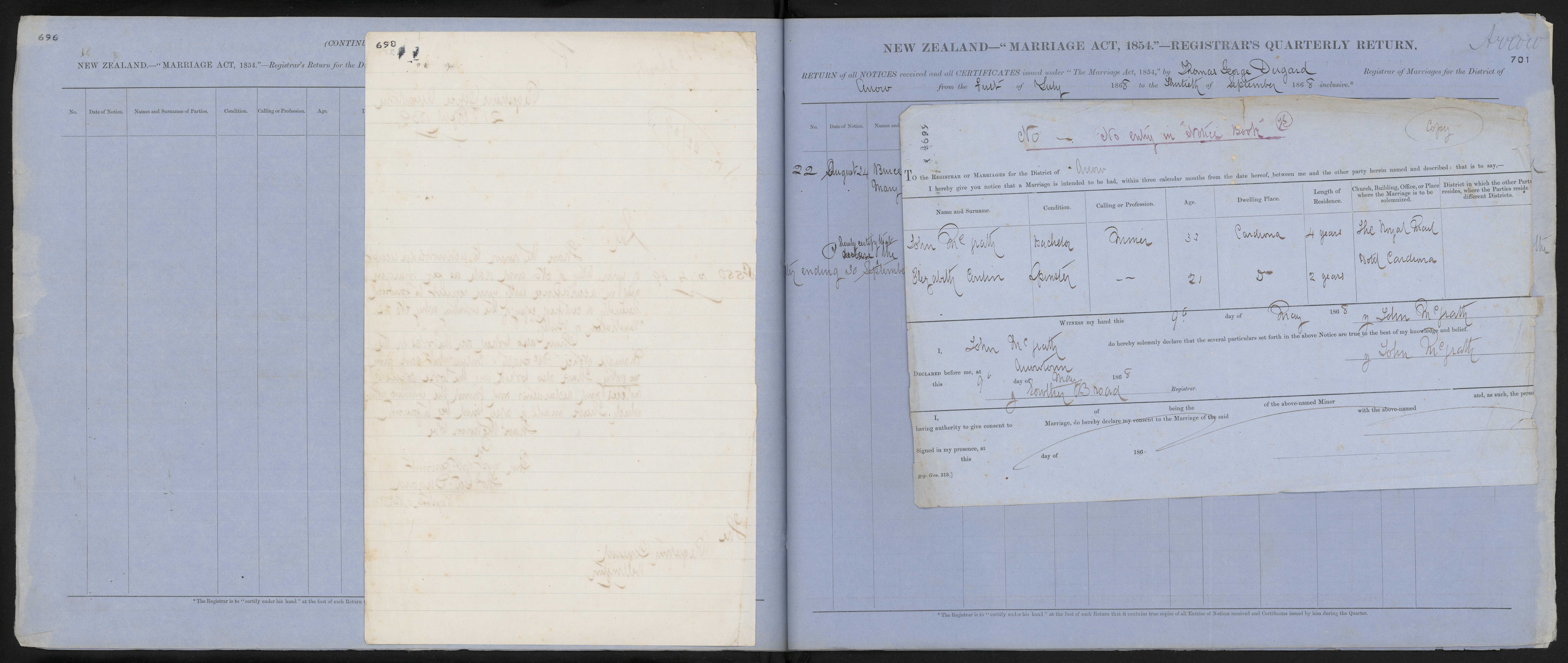 Reference: Registrar-General of Births, Deaths and Marriages, Notices of intention to marry, Series 8937, R2840380, Archives New Zealand Te Rua Mahara o te Kāwanatanga, Wellington
