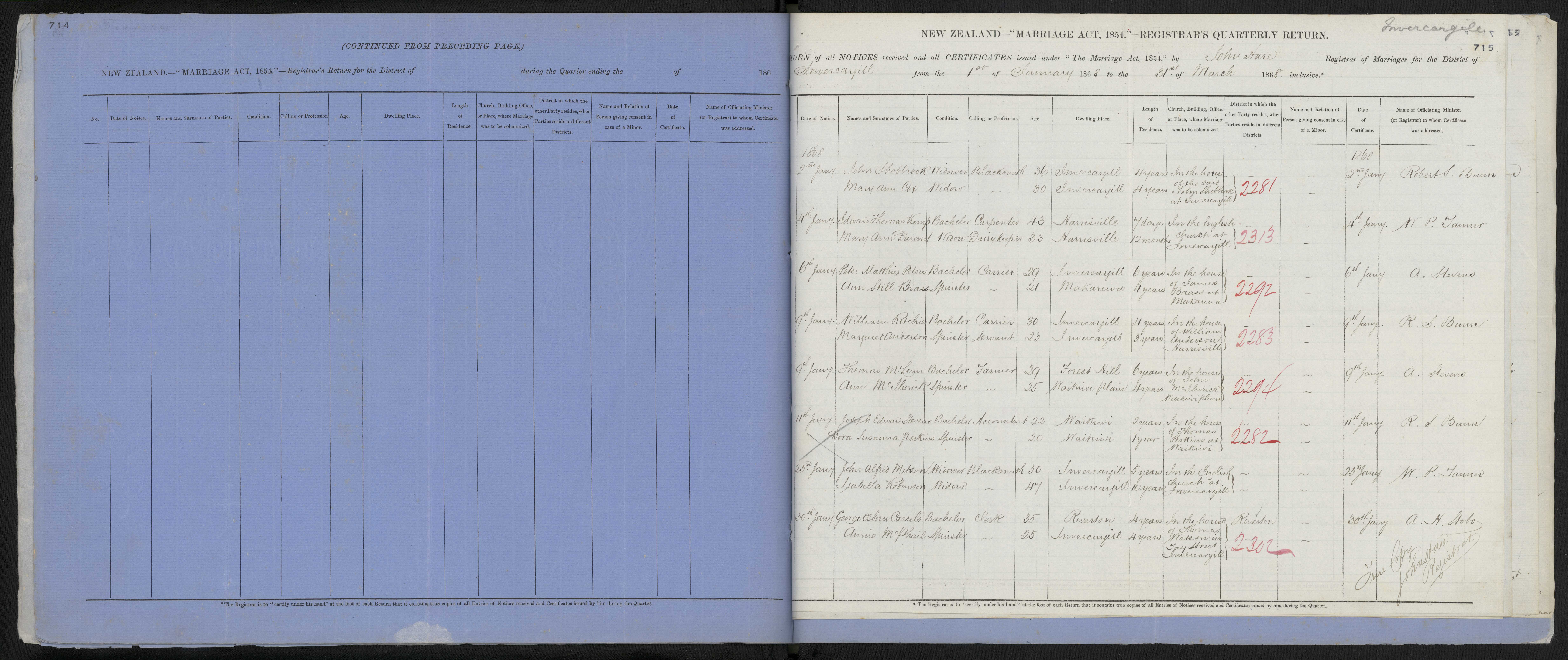 In the house of John Shobbrook at Invercargill | 68/2281 | 2 January 1868 | Robert S. Bunn | ||||||||||||||||||||||||||||||||||||||||||||||||||