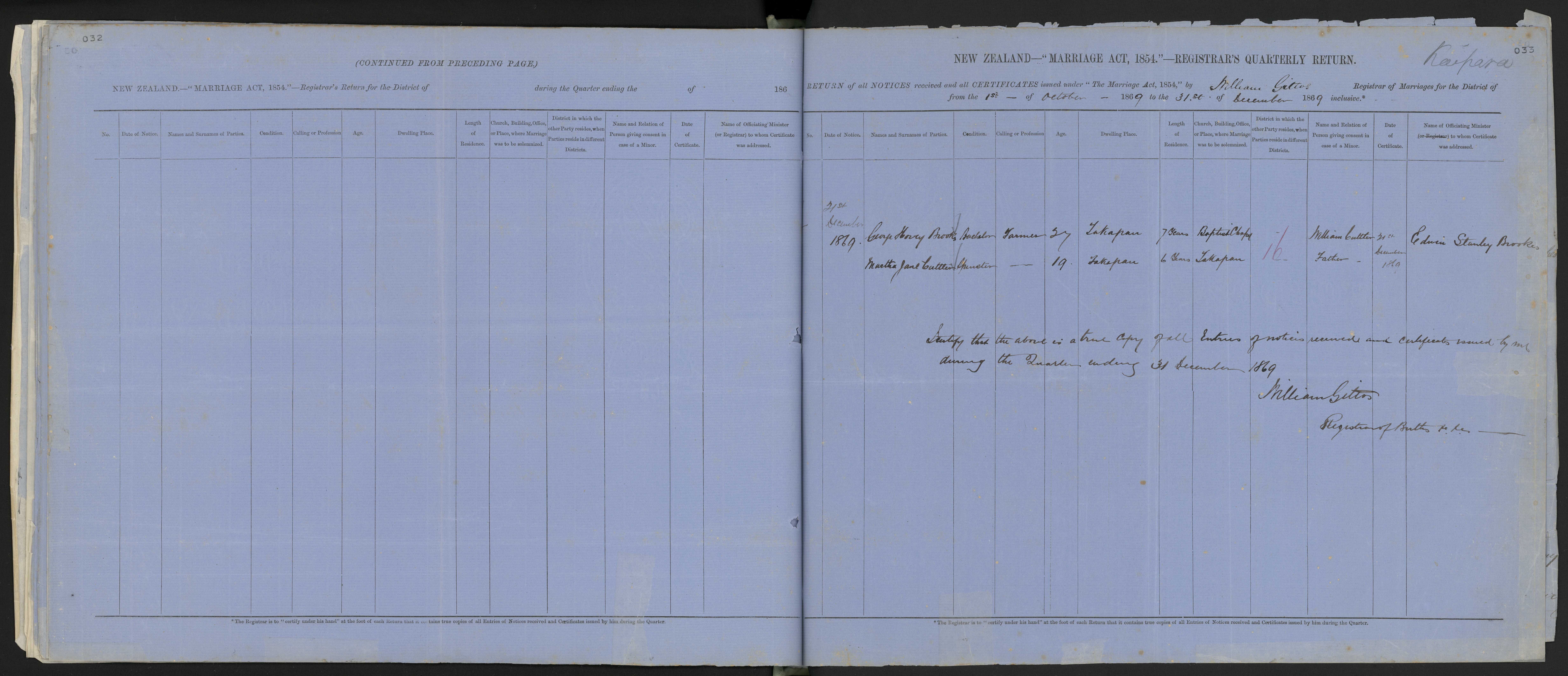 Reference: Registrar-General of Births, Deaths and Marriages, Notices of intention to marry, Series 8937, R2840381, Archives New Zealand Te Rua Mahara o te Kāwanatanga, Wellington