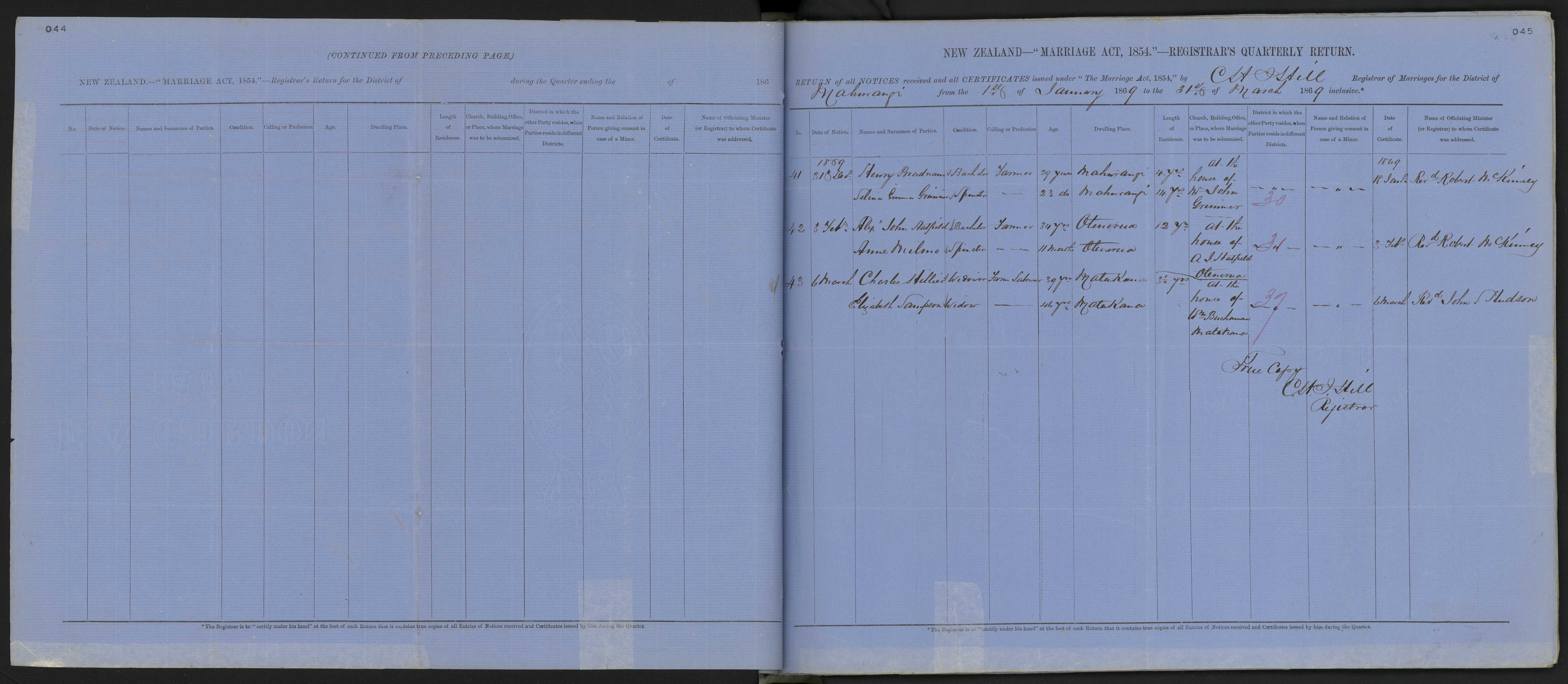 Reference: Registrar-General of Births, Deaths and Marriages, Notices of intention to marry, Series 8937, R2840381, Archives New Zealand Te Rua Mahara o te Kāwanatanga, Wellington