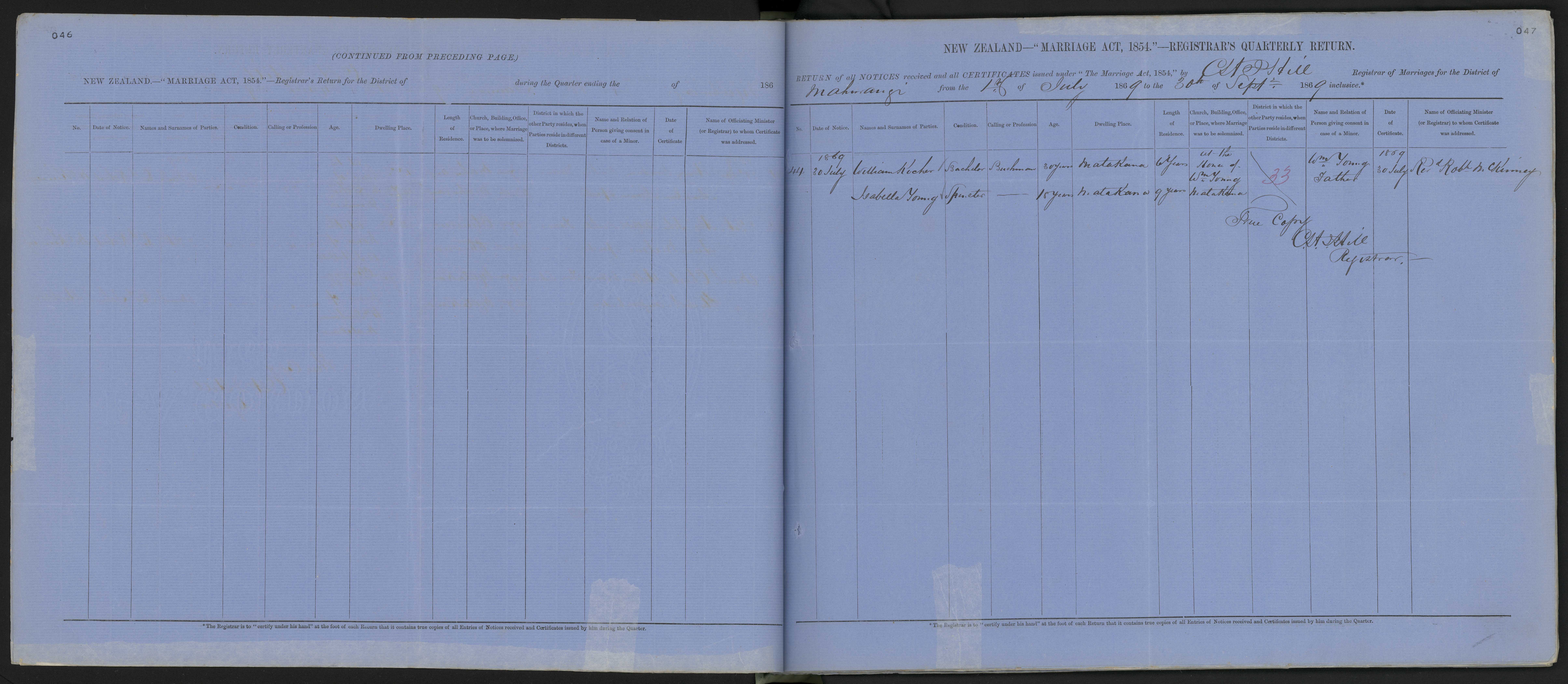 Date of Certificate 30 July 1869