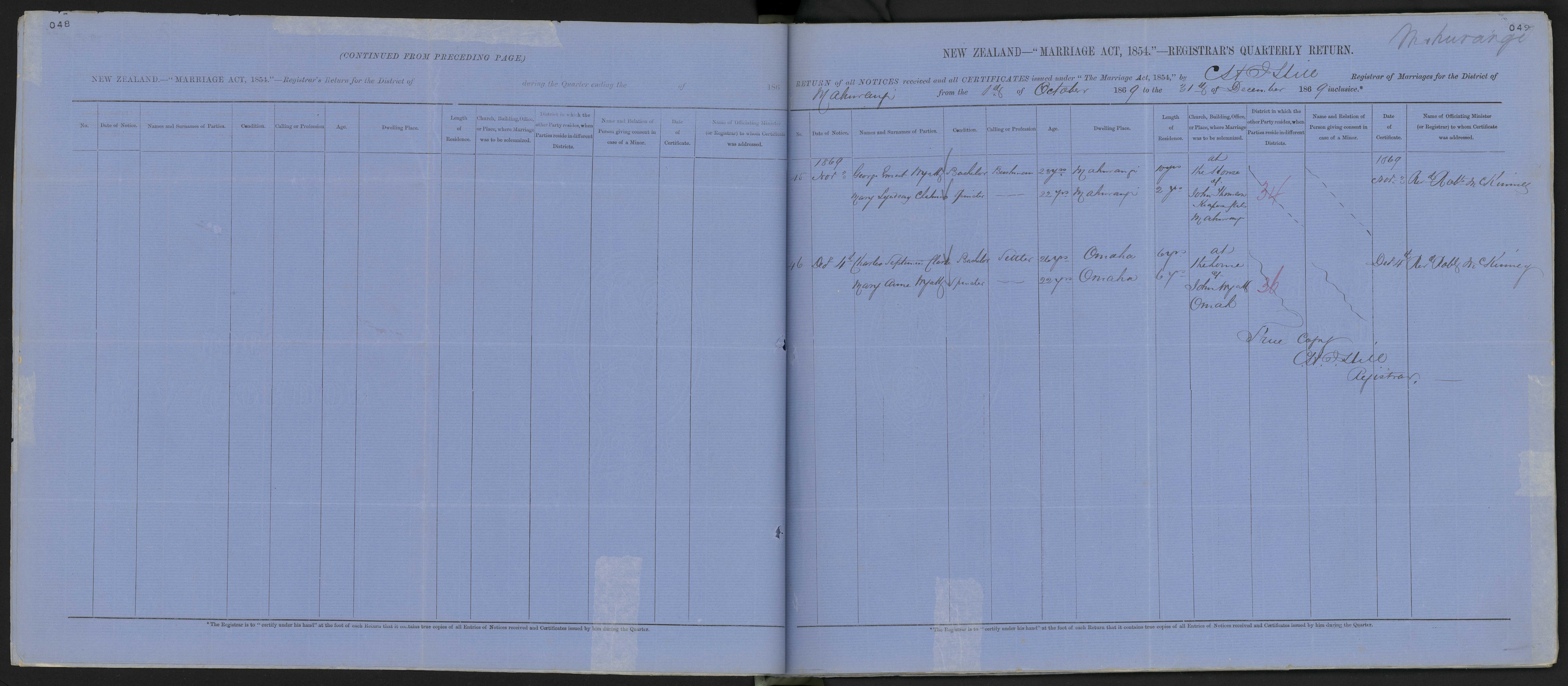Reference: Registrar-General of Births, Deaths and Marriages, Notices of intention to marry, Series 8937, R2840381, Archives New Zealand Te Rua Mahara o te Kāwanatanga, Wellington