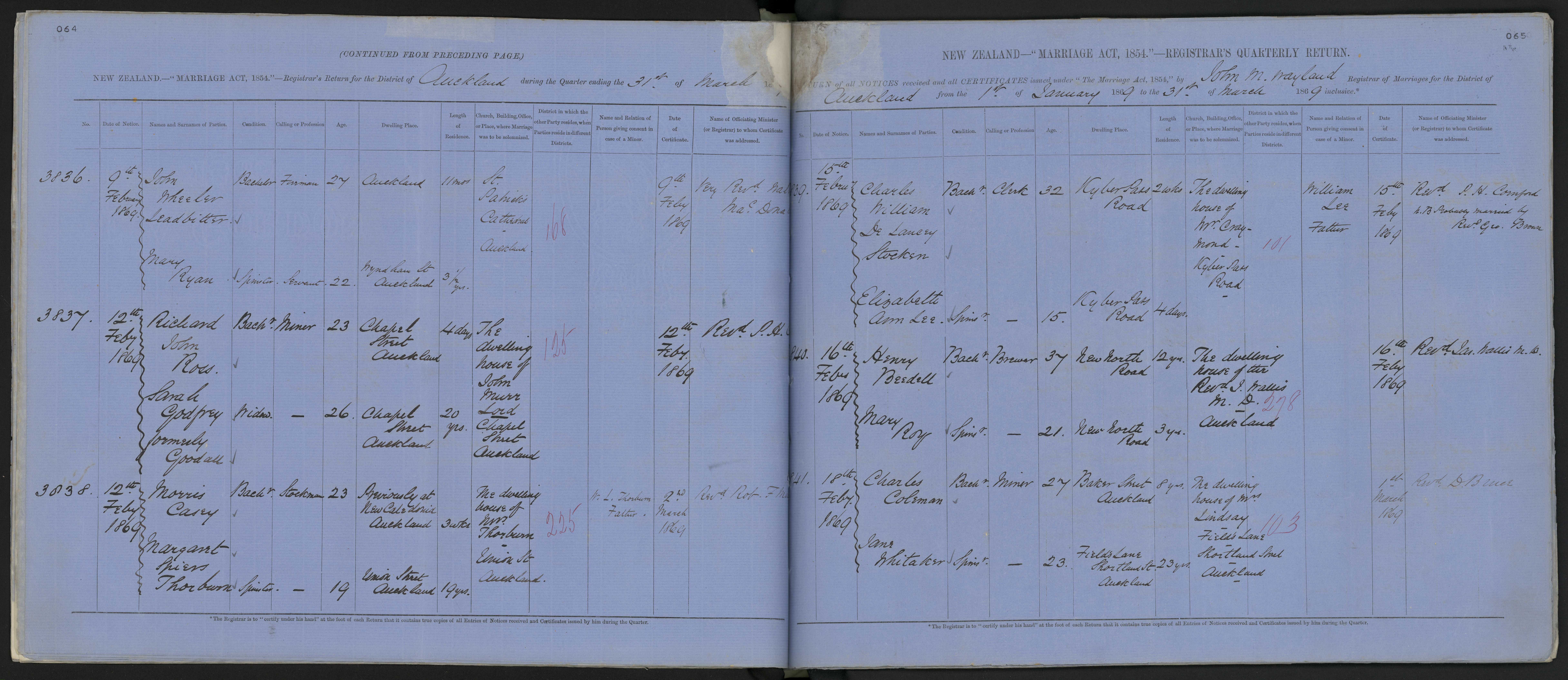 Reference: Registrar-General of Births, Deaths and Marriages, Notices of intention to marry, Series 8937, R2840381, Archives New Zealand Te Rua Mahara o te Kāwanatanga, Wellington