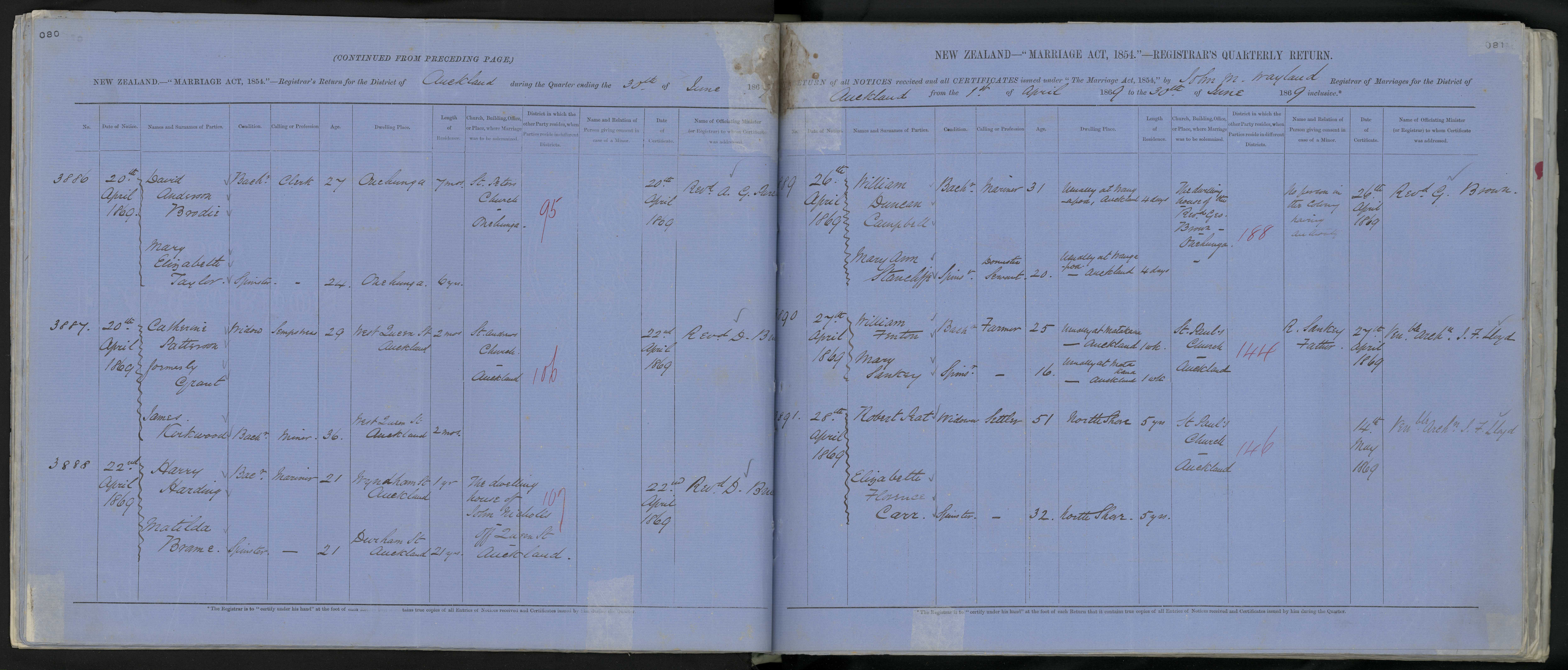 St. Andrews Church, Auckland 106 22 April 1869 Revd. D. Bruce