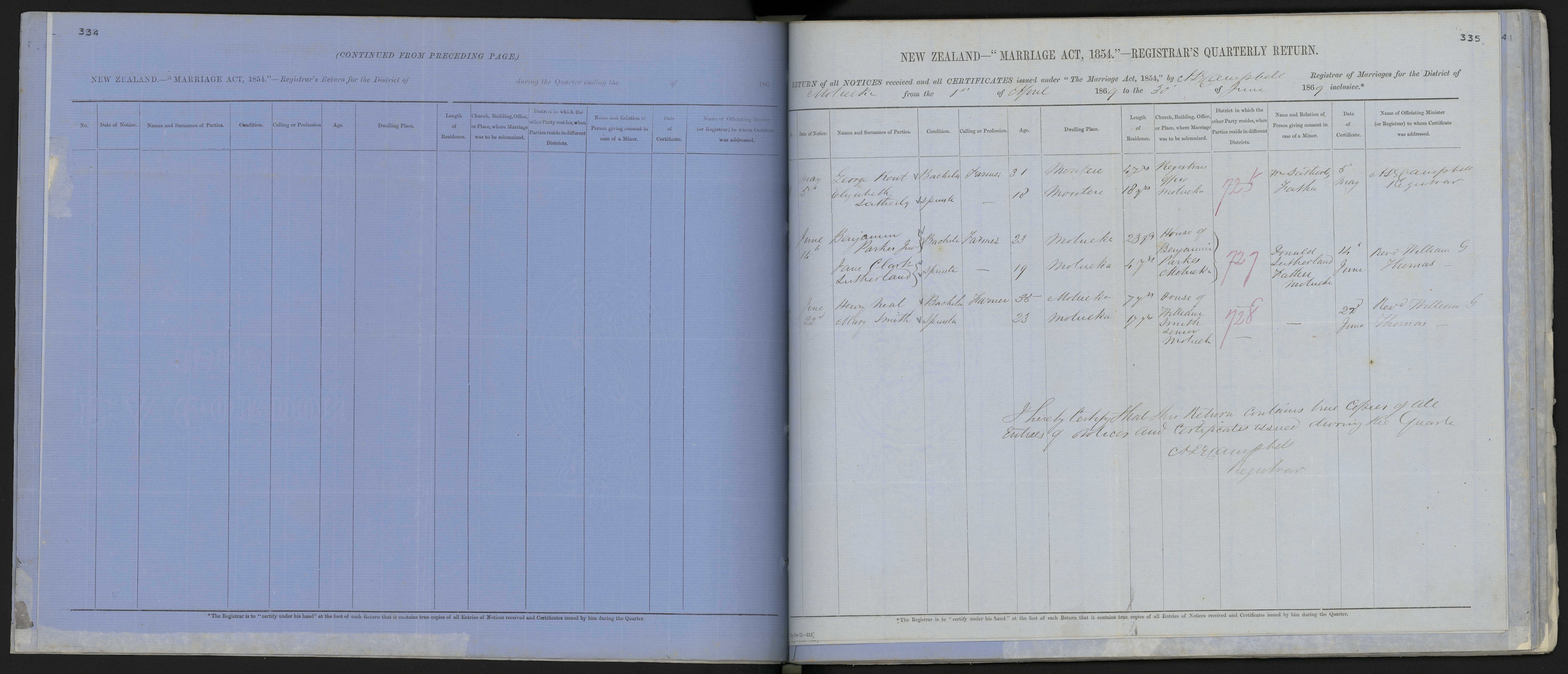 Registrar's Office, Motueka 725 Mr. Satherly, Father 5 May 1869 A. L. G. Campbell, Registrar
