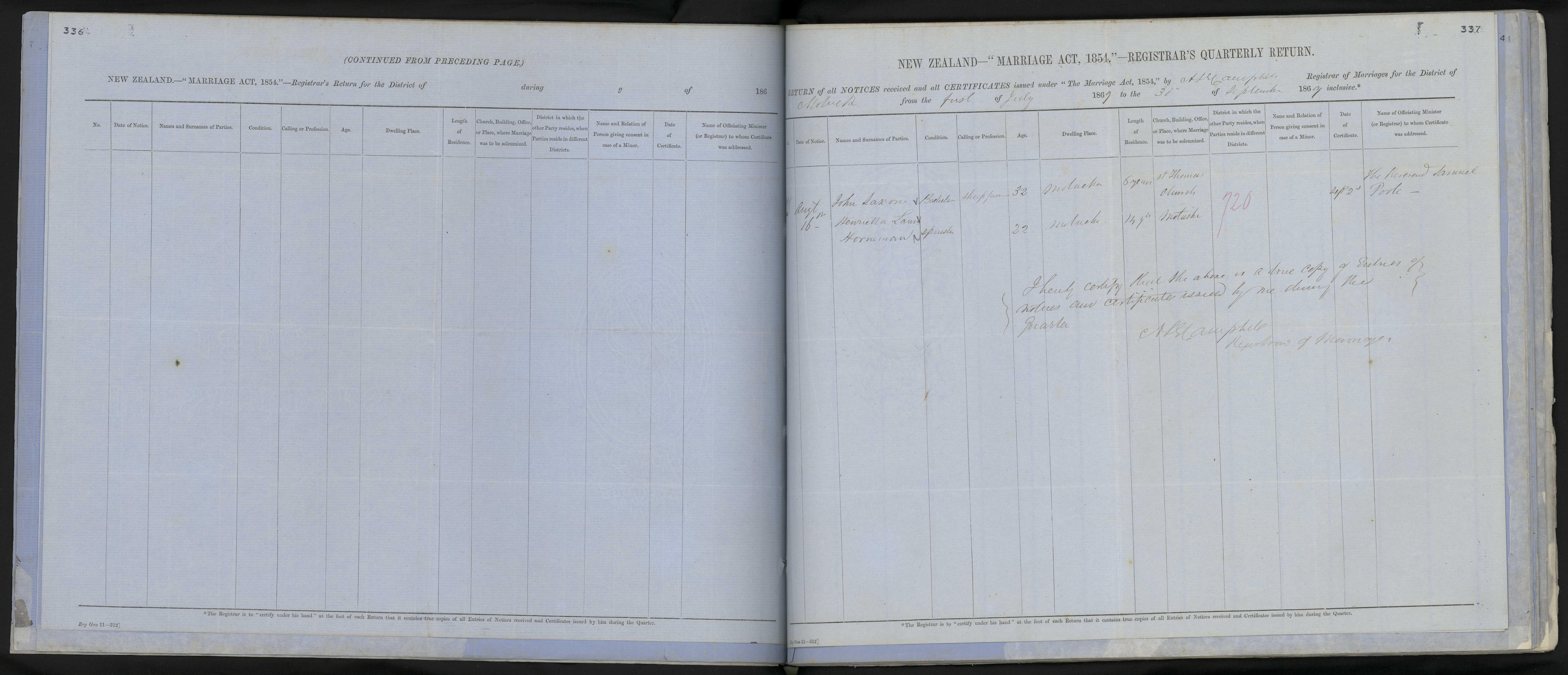 Reference: Registrar-General of Births, Deaths and Marriages, Notices of intention to marry, Series 8937, R2840381, Archives New Zealand Te Rua Mahara o te Kāwanatanga, Wellington