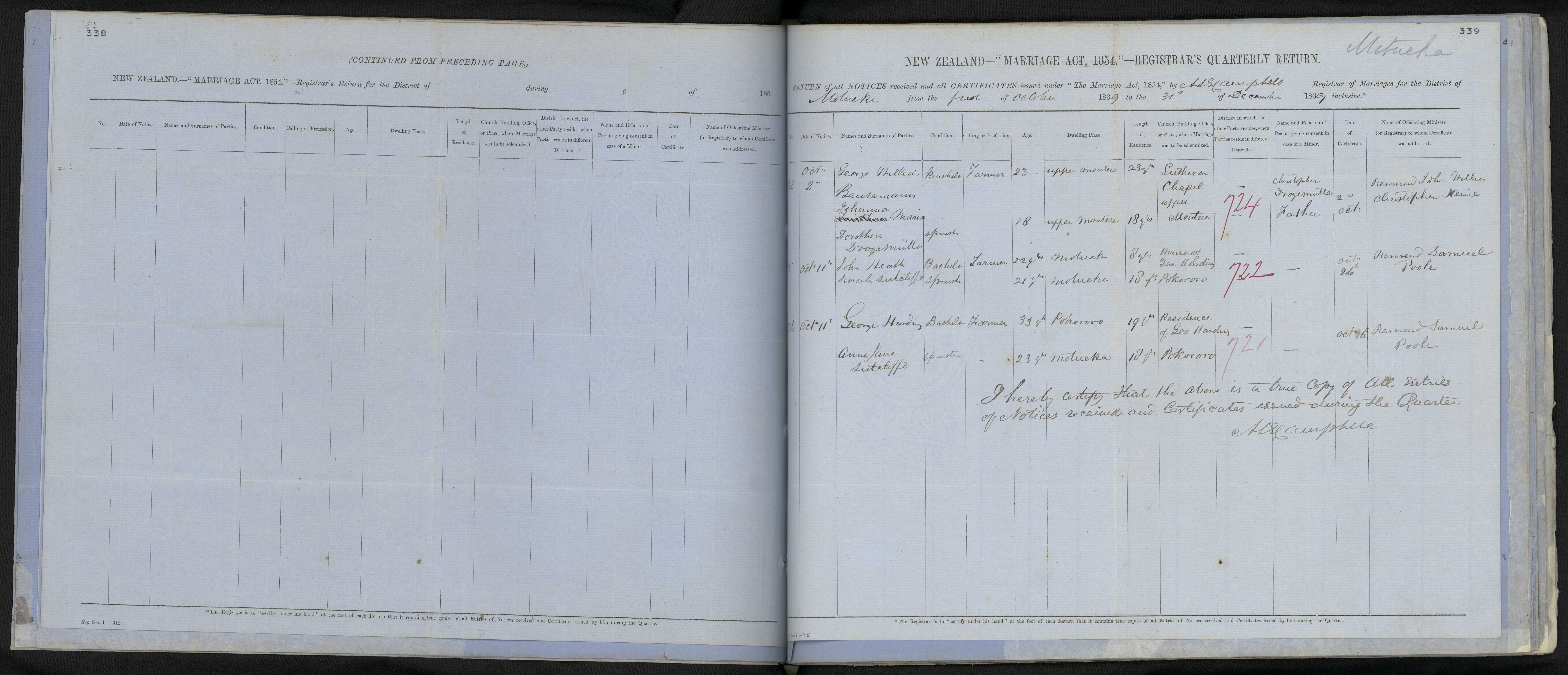 Reference: Registrar-General of Births, Deaths and Marriages, Notices of intention to marry, Series 8937, R2840381, Archives New Zealand Te Rua Mahara o te Kāwanatanga, Wellington