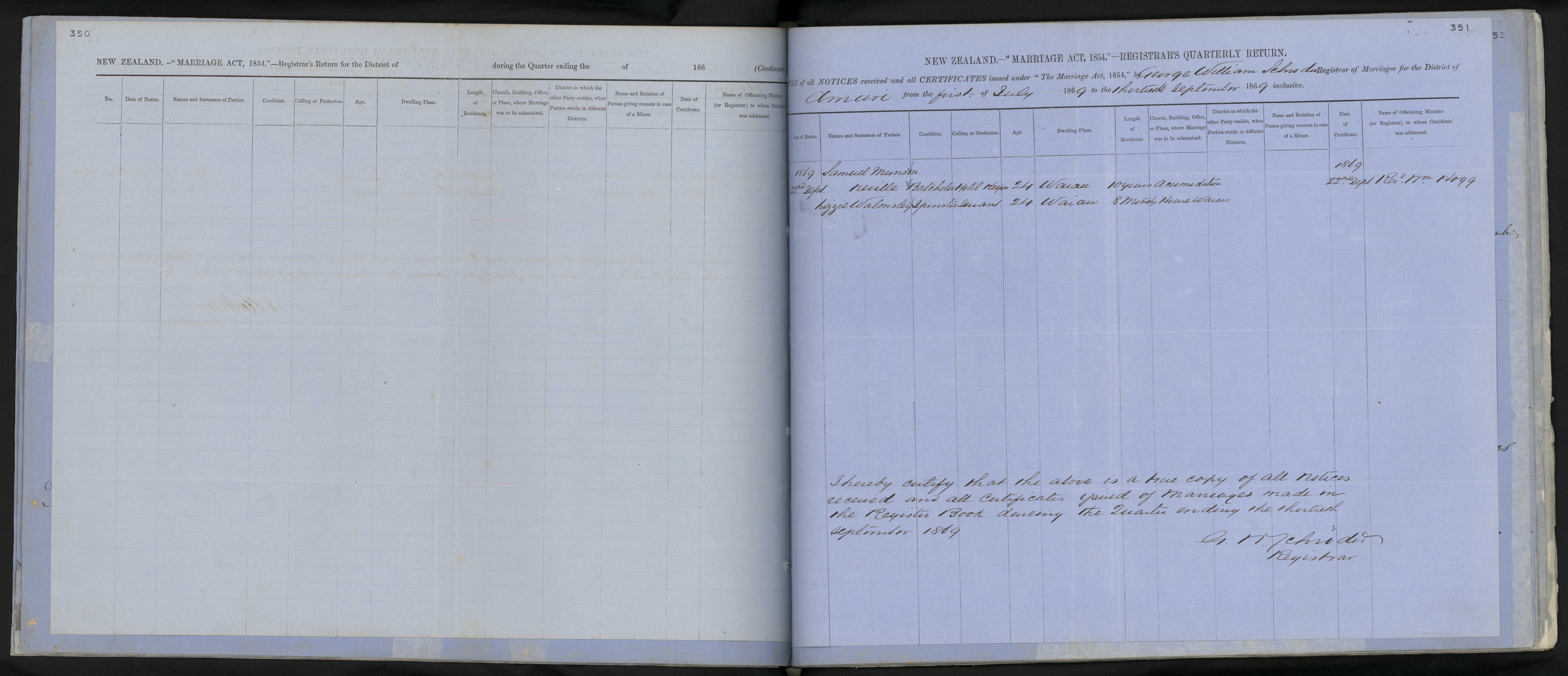 District of Amuri Quarter ending Jul - Sep Registrar George William Schroder