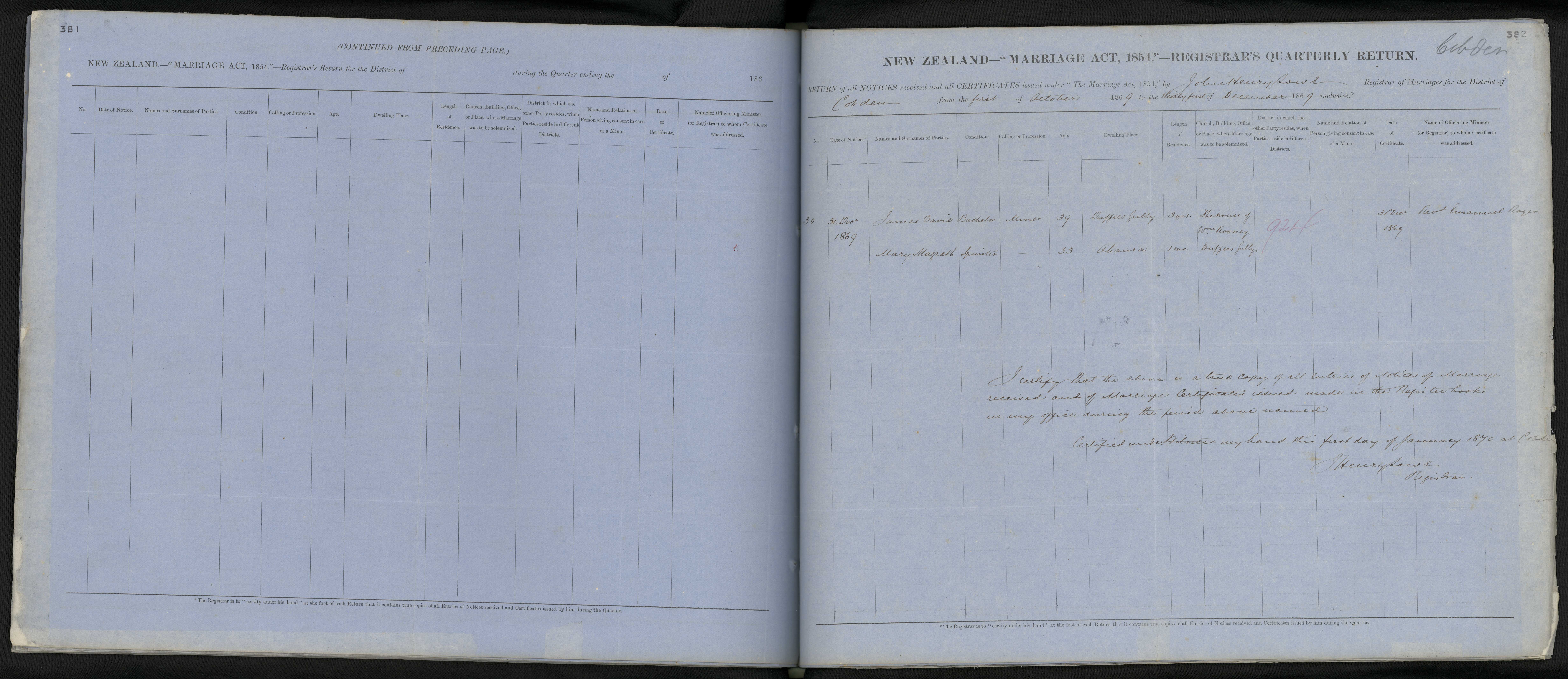 Reference: Registrar-General of Births, Deaths and Marriages, Notices of intention to marry, Series 8937, R2840381, Archives New Zealand Te Rua Mahara o te Kāwanatanga, Wellington