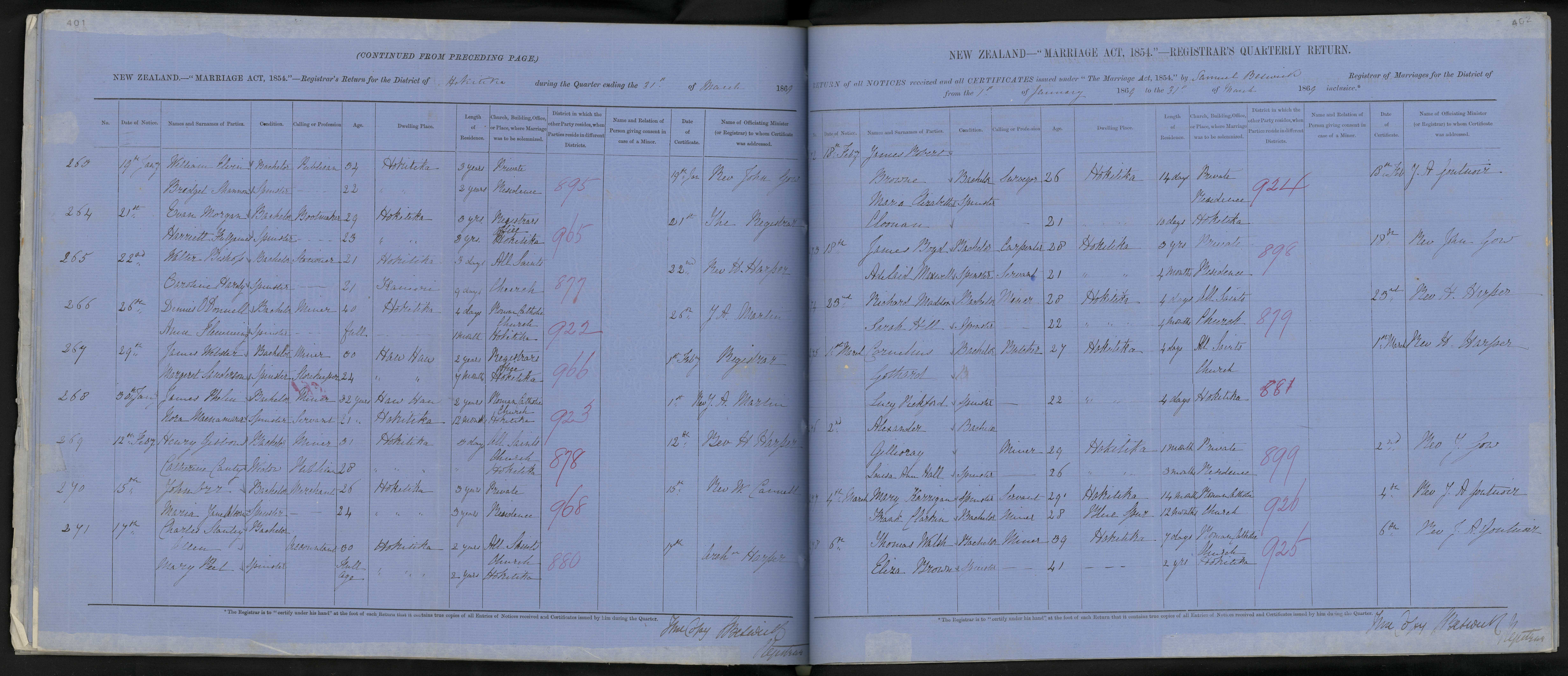 All Saints Church Hokitika | 69/881 | 1 March 1869 | Rev H. Harper | |||||||||||||||||||||||||||||||||||||||||||||||||||||