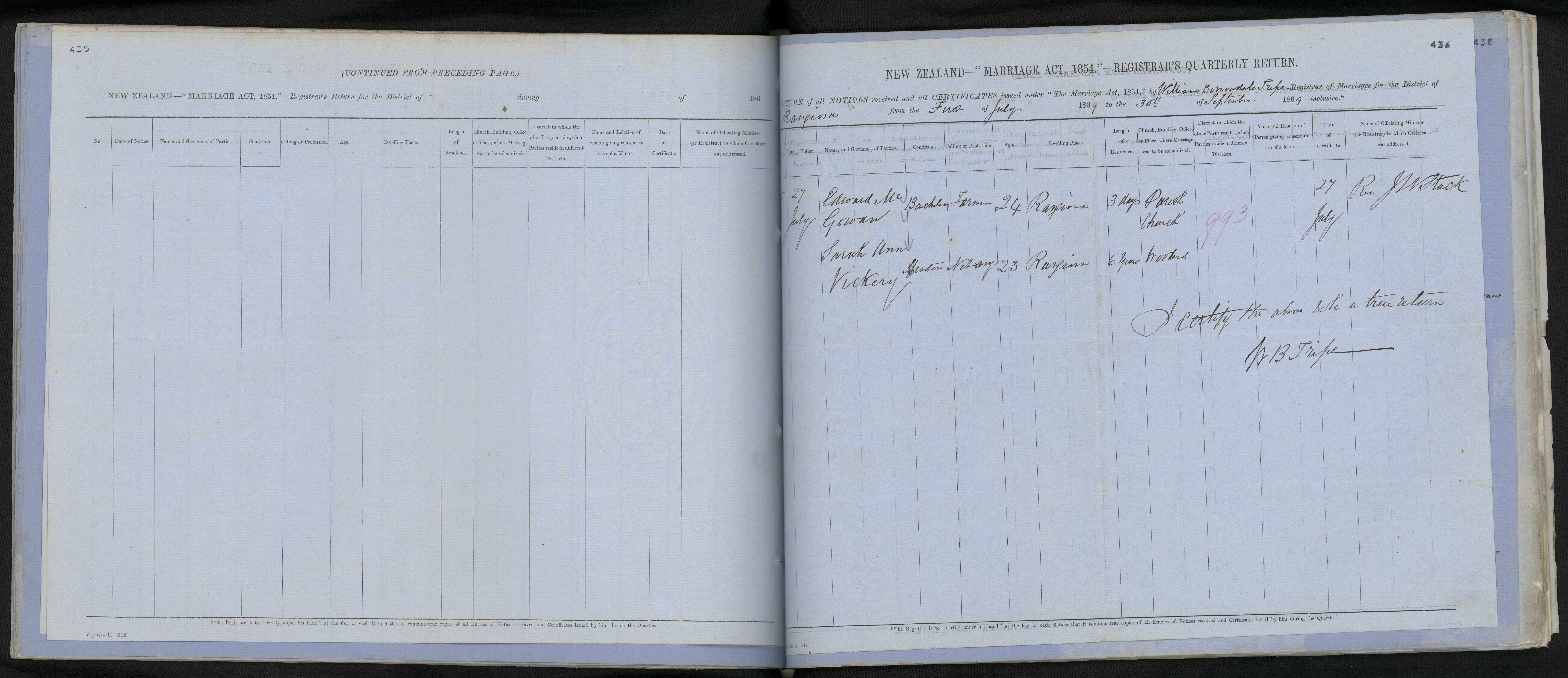 Reference: Registrar-General of Births, Deaths and Marriages, Notices of intention to marry, Series 8937, R2840381, Archives New Zealand Te Rua Mahara o te Kāwanatanga, Wellington