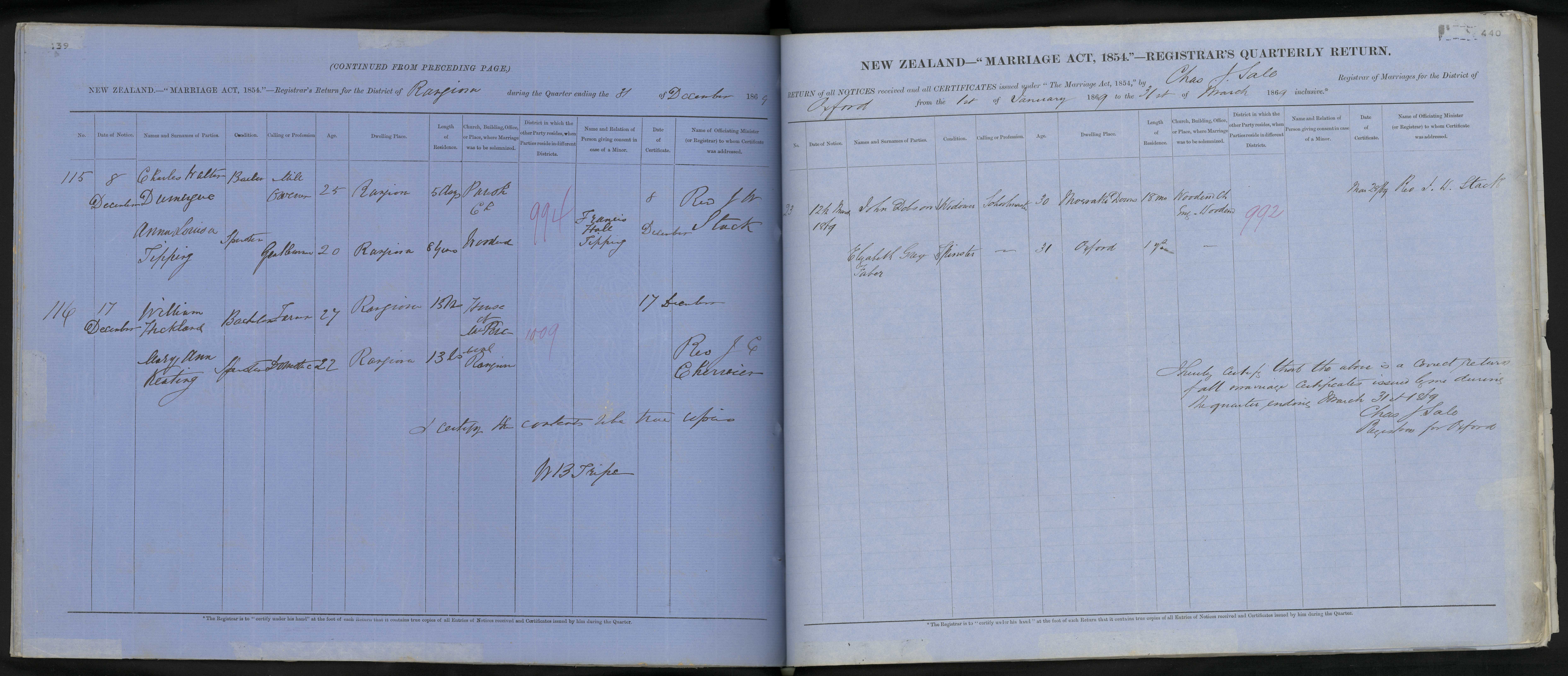 Reference: Registrar-General of Births, Deaths and Marriages, Notices of intention to marry, Series 8937, R2840381, Archives New Zealand Te Rua Mahara o te Kāwanatanga, Wellington