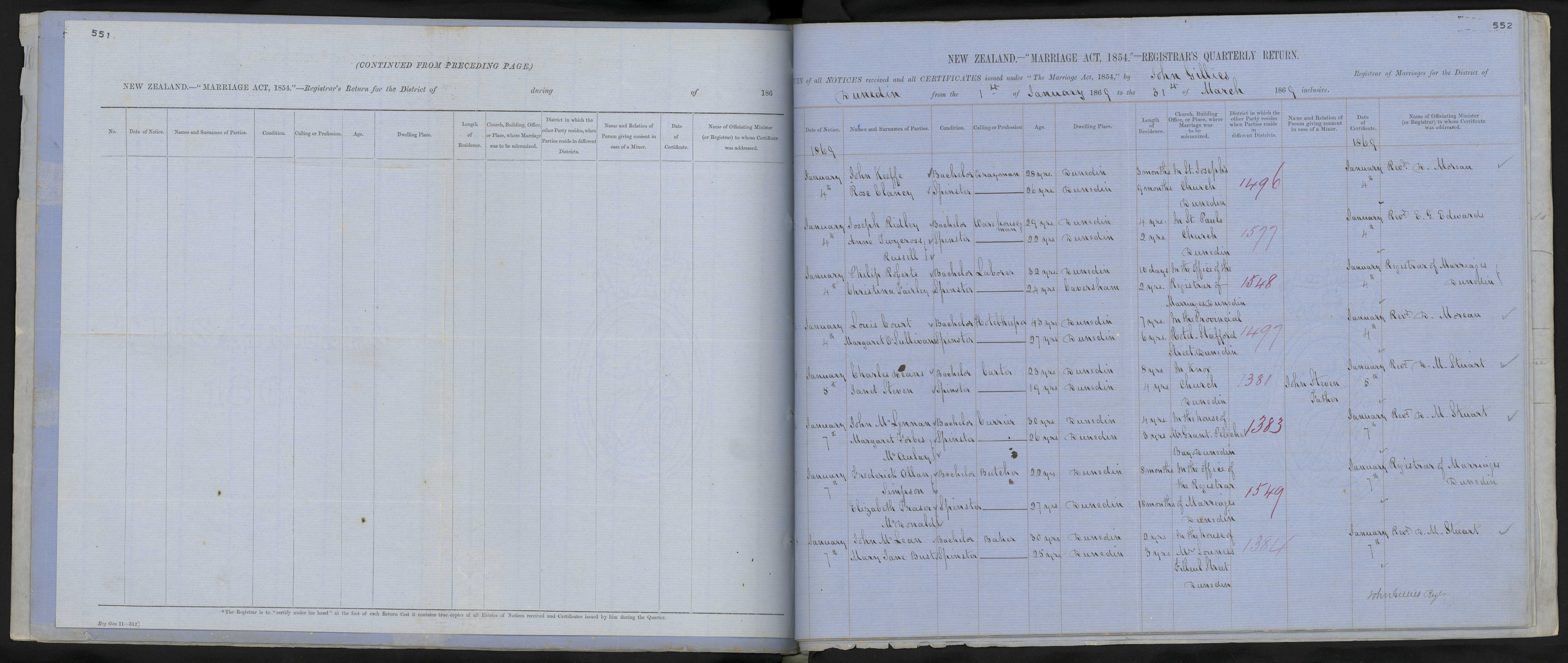 In the office of the Registrar of Marriages Dunedin | 69/1549 | 7 January 1869 | Registrar of Marriages Dunedin | ||||||||||||||||||||||||||||||||||||||||||||||||||