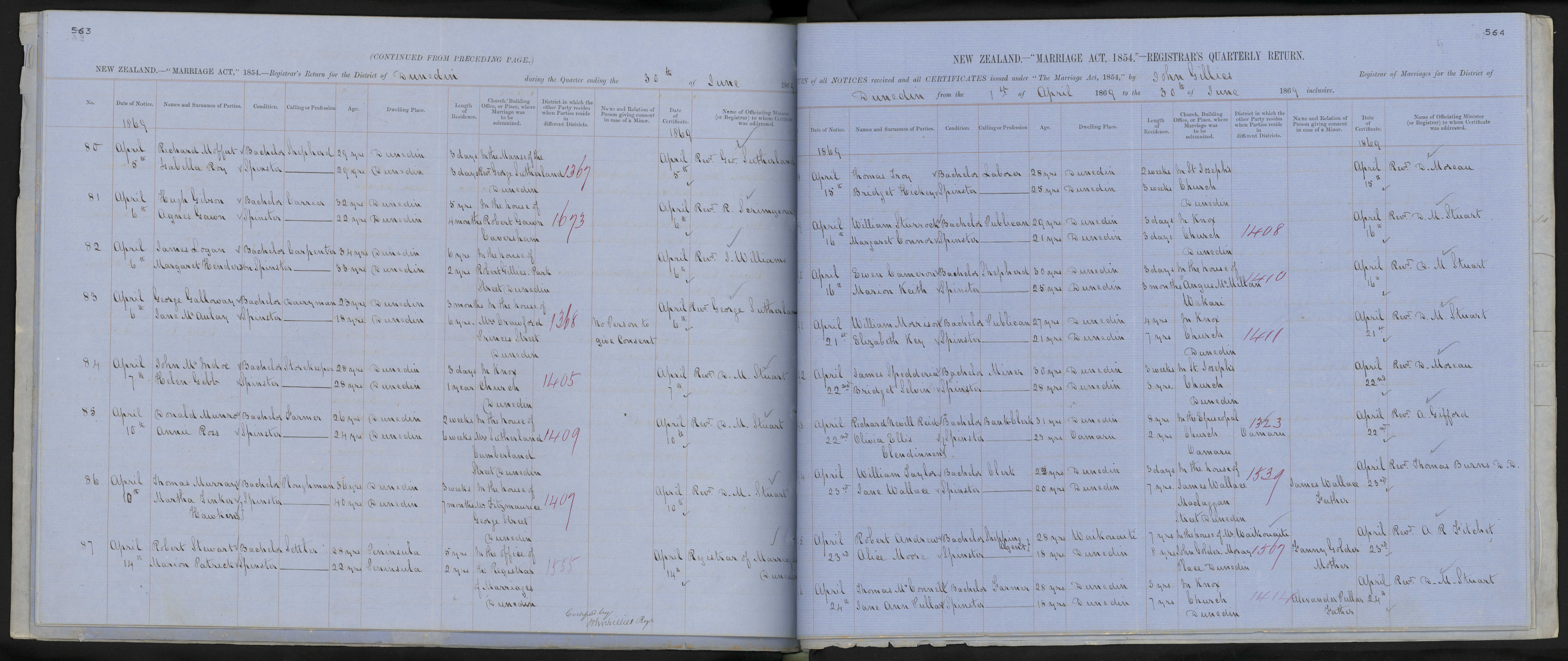 In Knox Church Dunedin | 69/1408 | 16 April 1869 | Rev. D. M. Stuart | ||||||||||||||||||||||||||||||||||||||||||||||||||