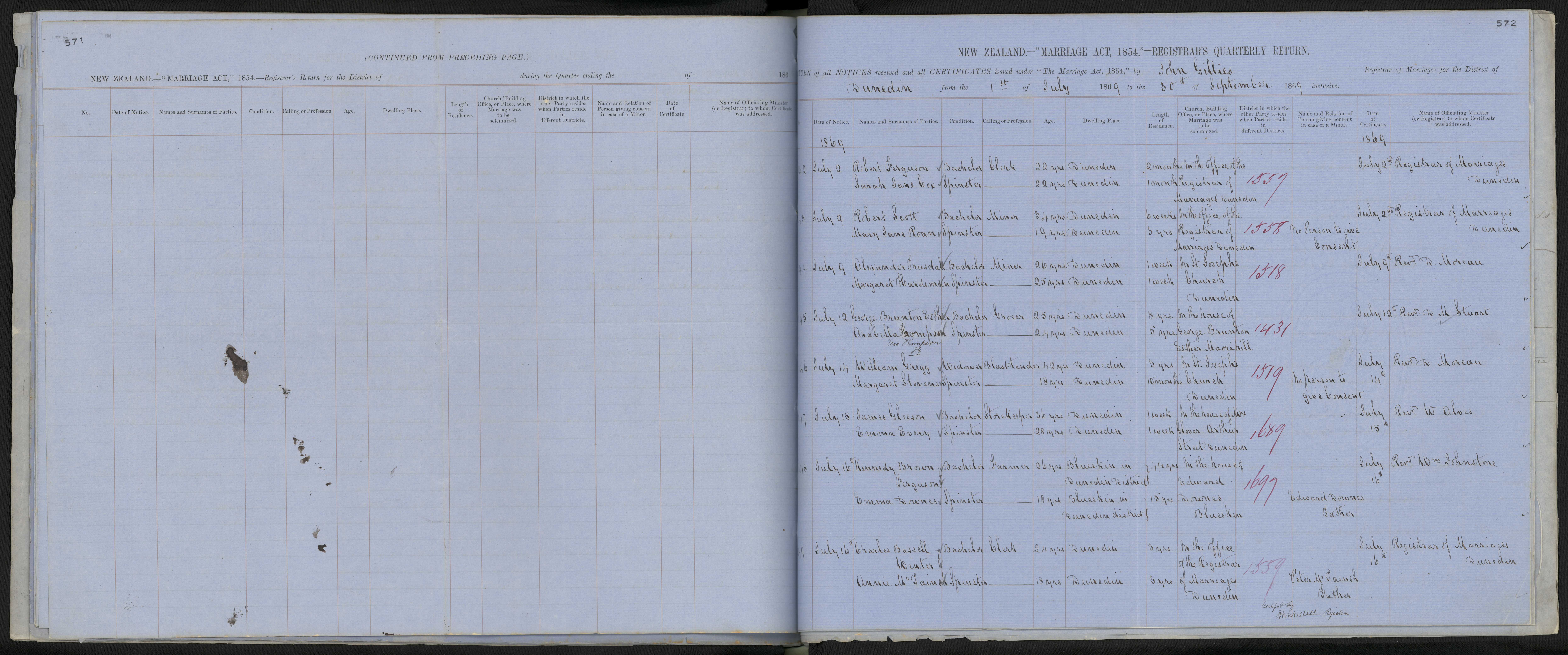 In the Office of the Registrar of Marriages Dunedin | 69/1558 | No person to give consent | 2 July 1869 | Registrar of Marriages Dunedin | |||||||||||||||||||||||||||||||||||||||||||||||||