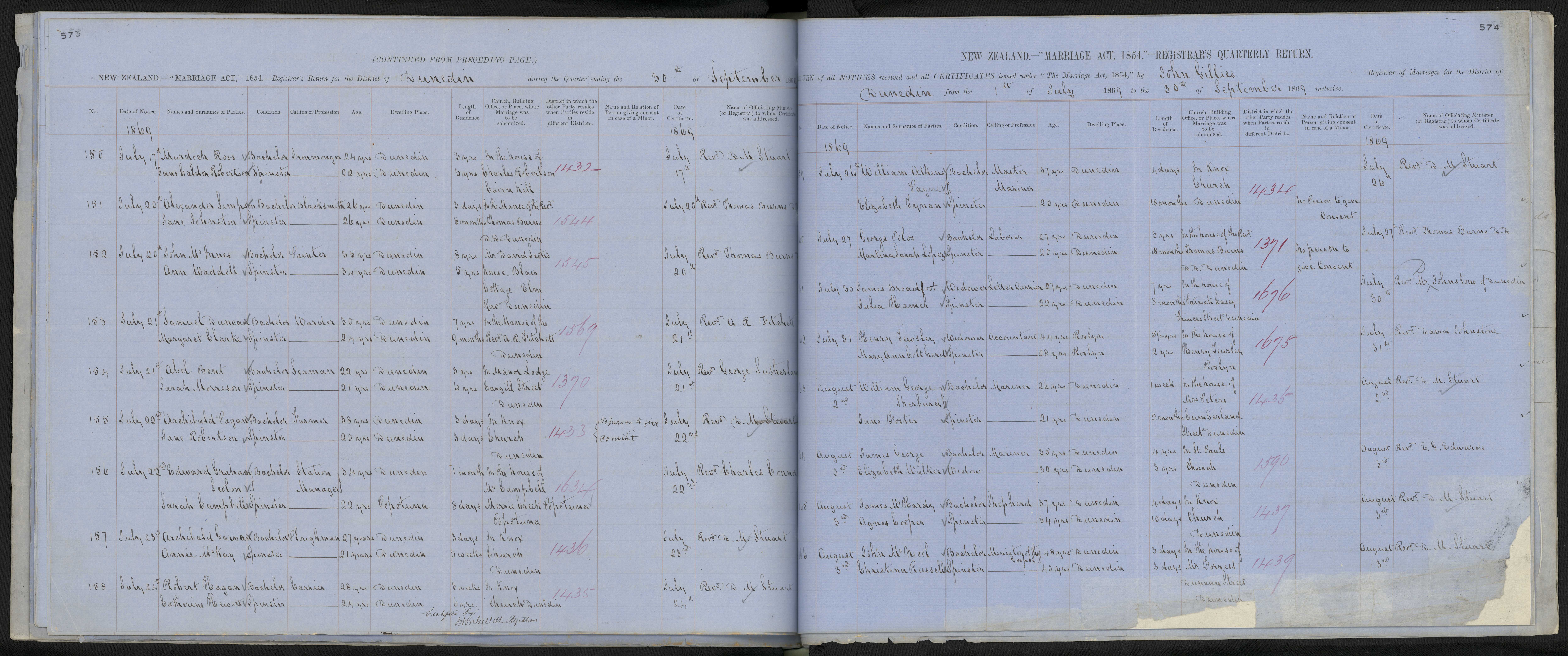 In Knox Church Dunedin | 69/1434 | No person to give consent | 26 July 1869 | Rev. D. M. Stuart | |||||||||||||||||||||||||||||||||||||||||||||||||