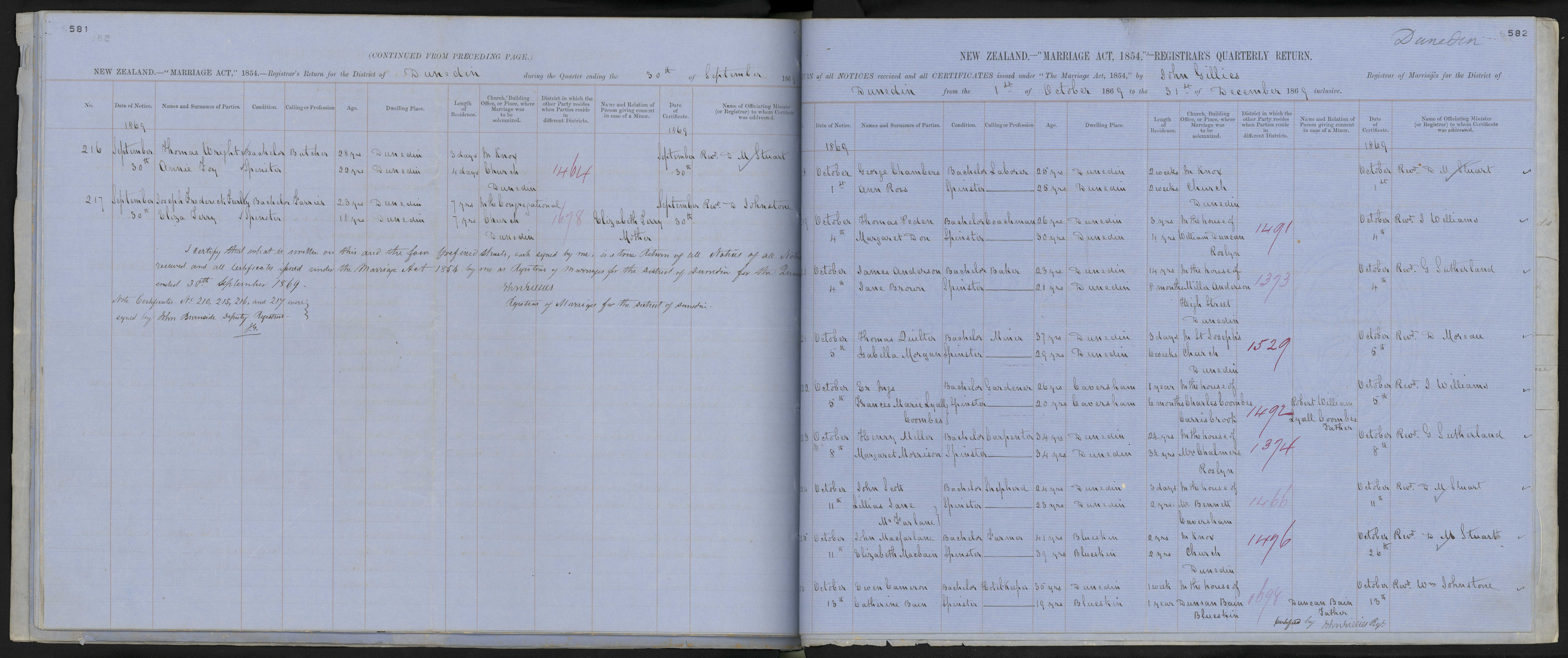 In Knox Church, Dunedin | 1 October 1869 | Rev. D M Stuart | |||||||||||||||||||||||||||||||||||||||||||||||||||