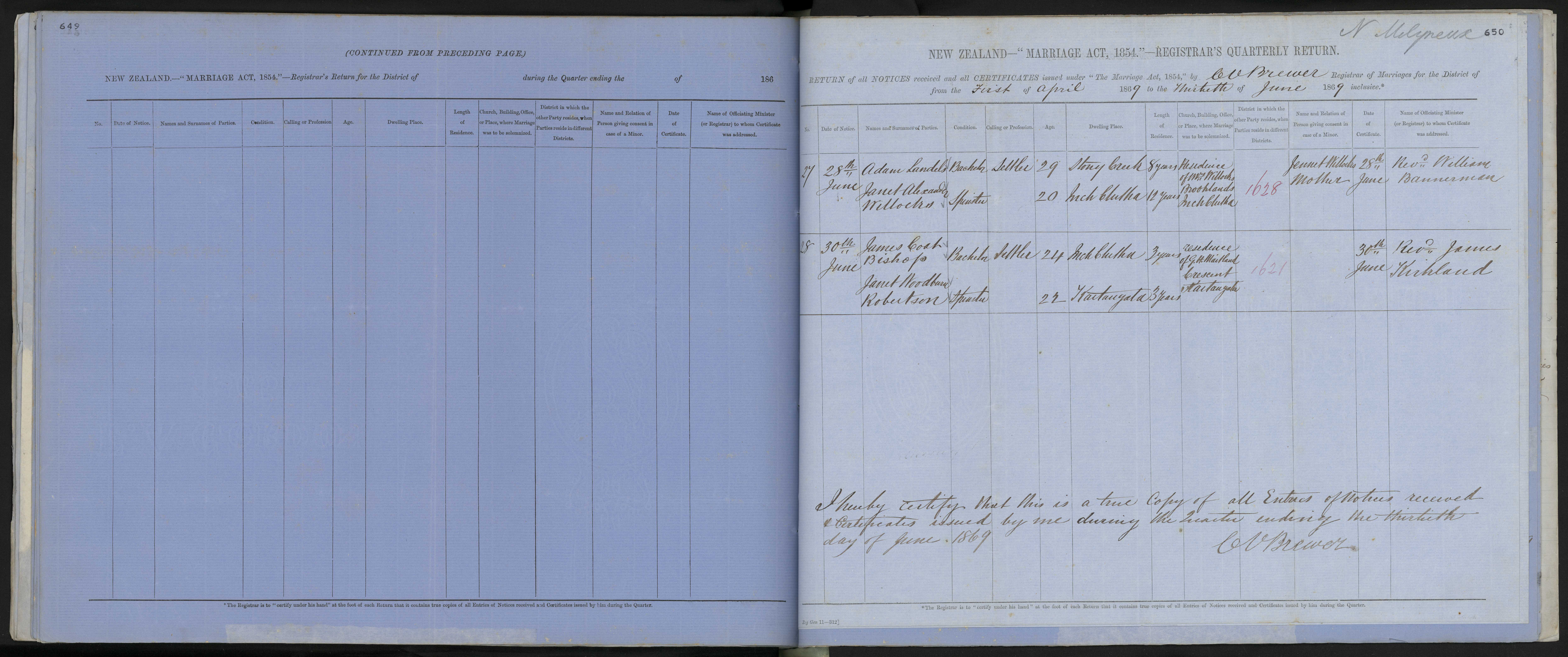 Reference: Registrar-General of Births, Deaths and Marriages, Notices of intention to marry, Series 8937, R2840381, Archives New Zealand Te Rua Mahara o te Kāwanatanga, Wellington