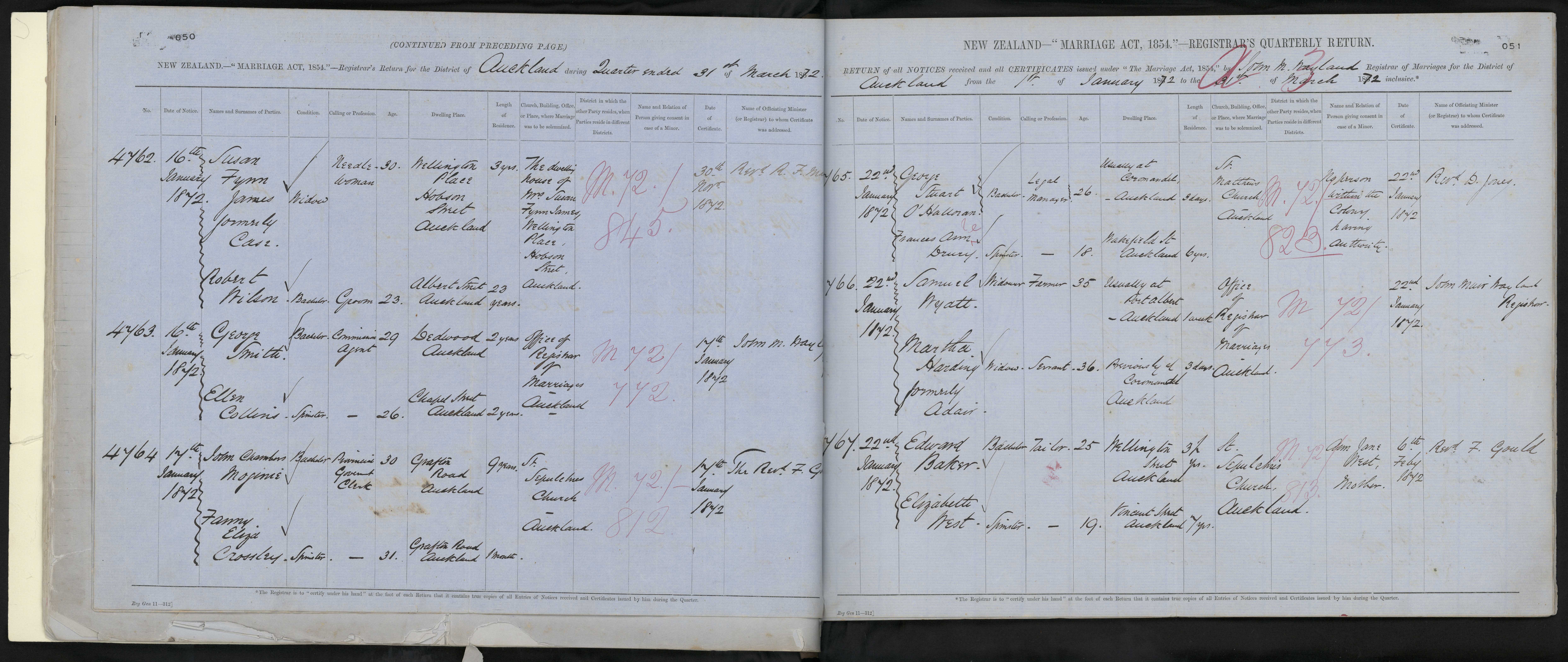 Office of Registrar of Marriages, Auckland 72/772 17 January 1872 John M. [unclear]