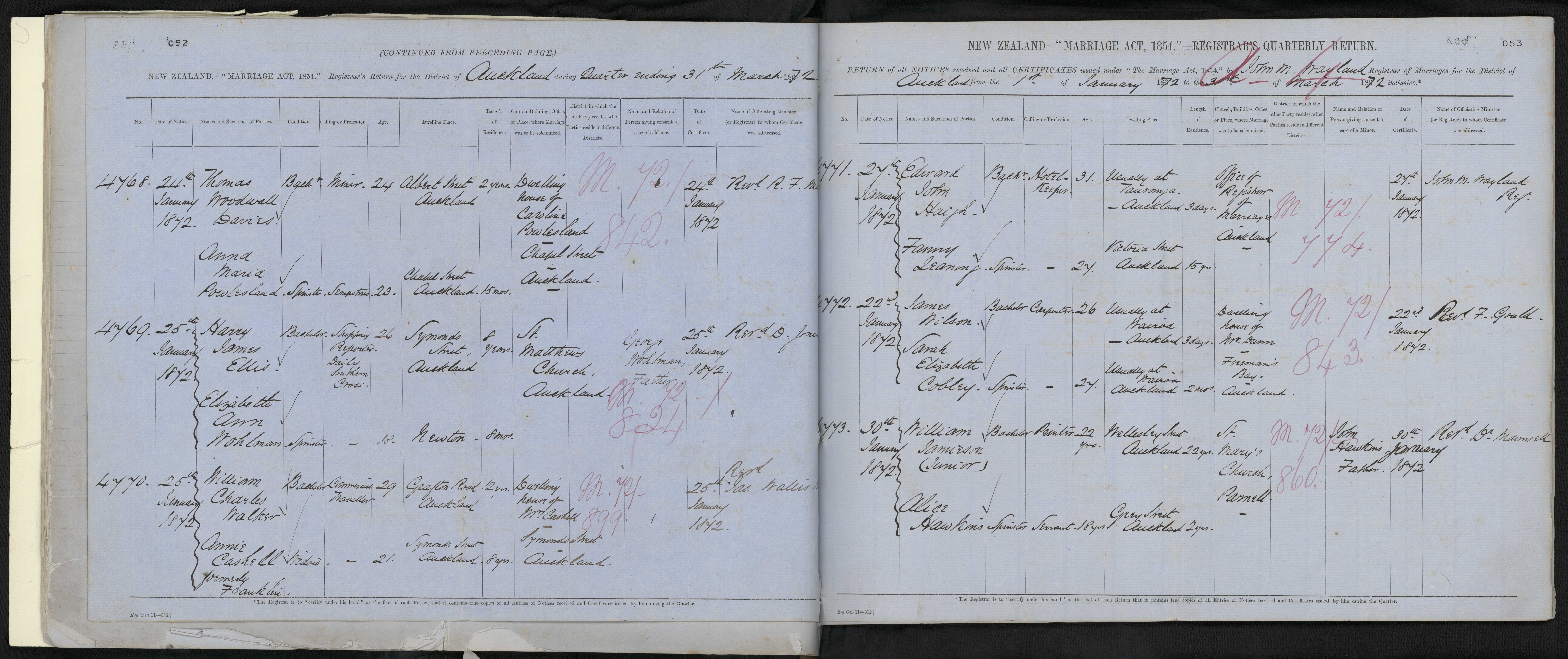 Reference: Registrar-General of Births, Deaths and Marriages, Notices of intention to marry, Series 8937, R2840384, Archives New Zealand Te Rua Mahara o te Kāwanatanga, Wellington